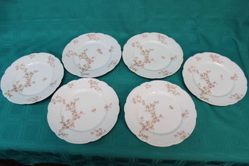 Set of 6 Limoges salad/ dessert plates. Small pink flower pattern. No chips.