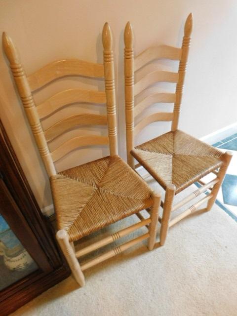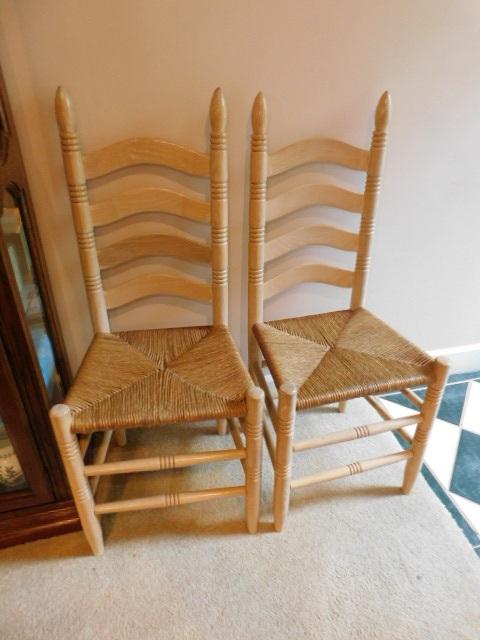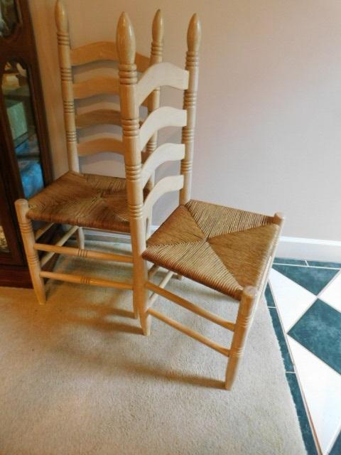 Set of 6 Matching Ladder Back Chairs with Rush Seats