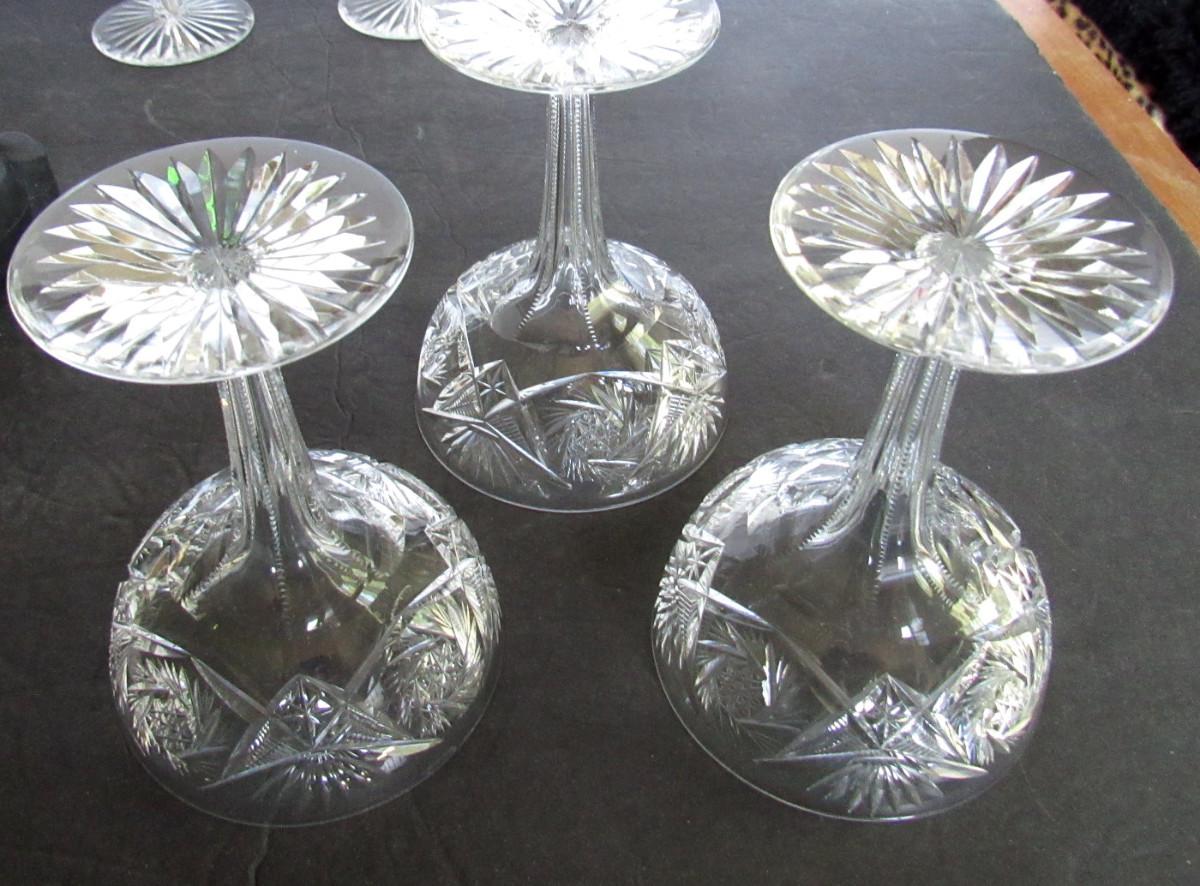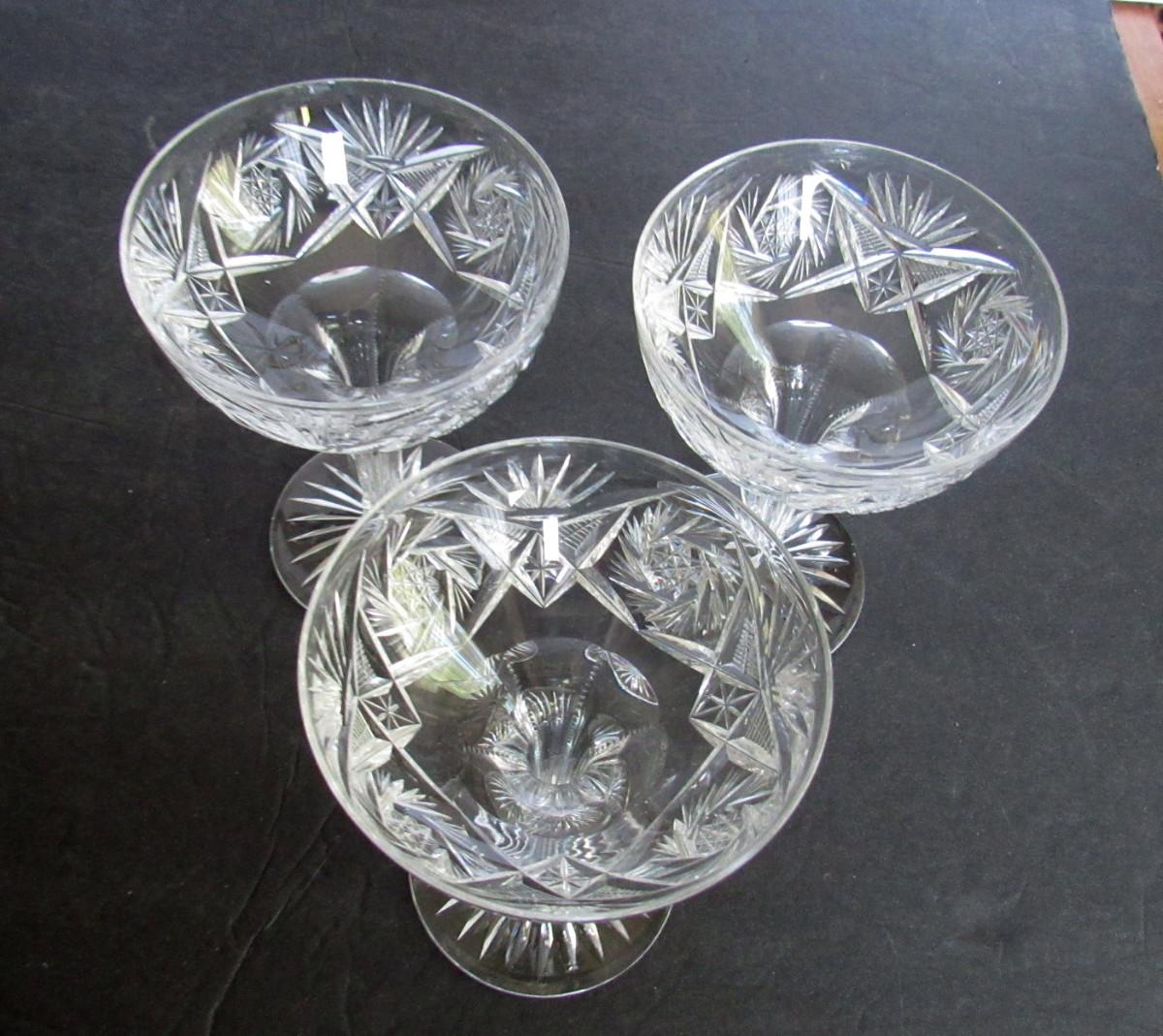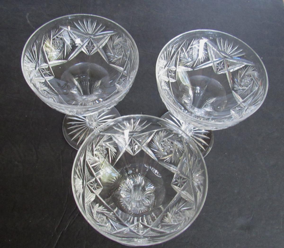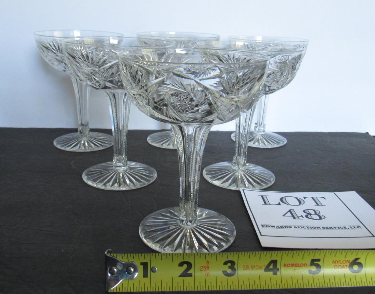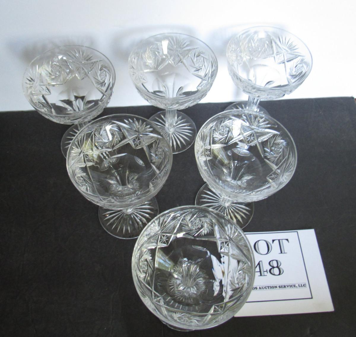 Set of 6 Matching Vintage Cut Glass Champagne Glasses