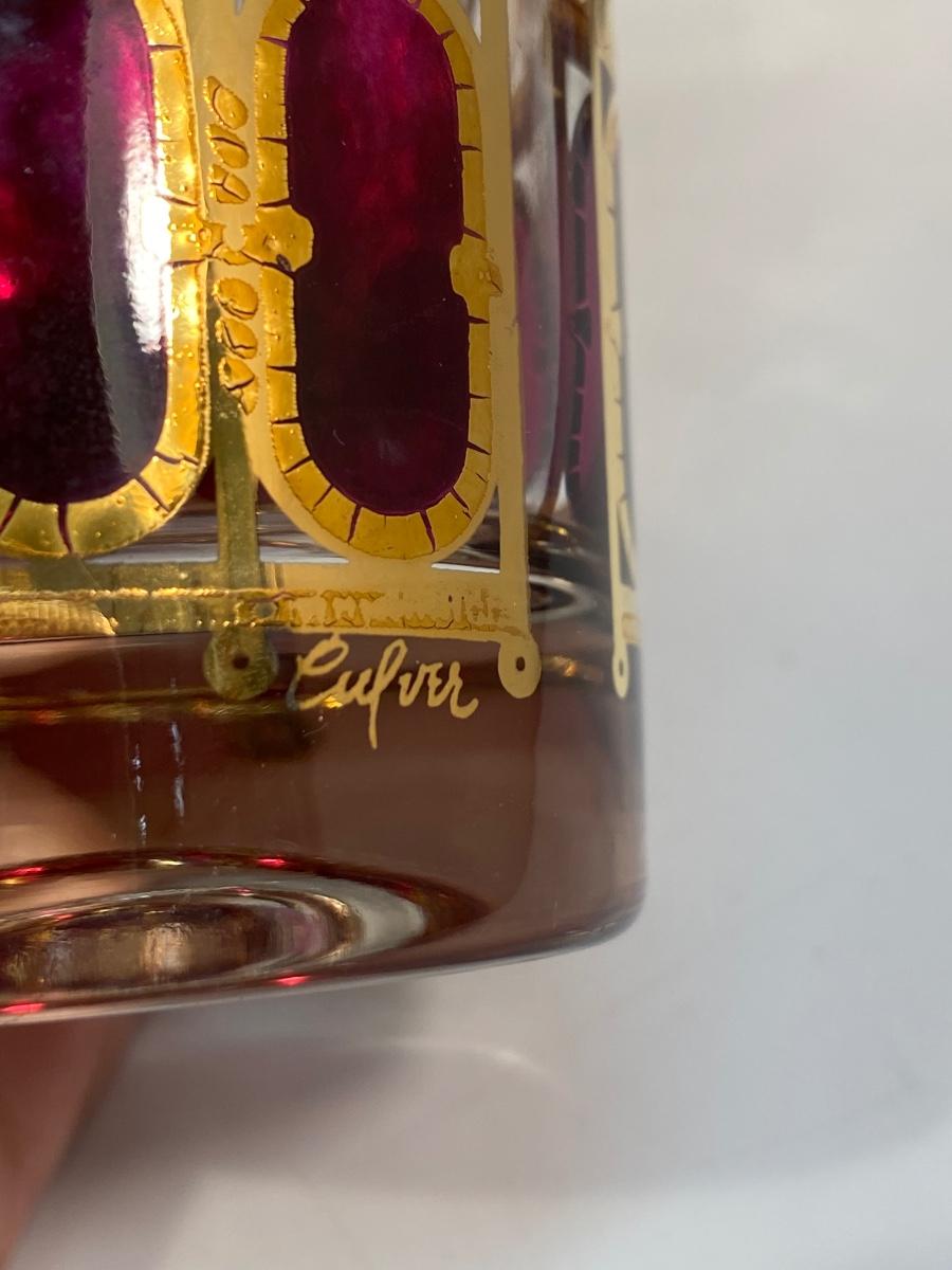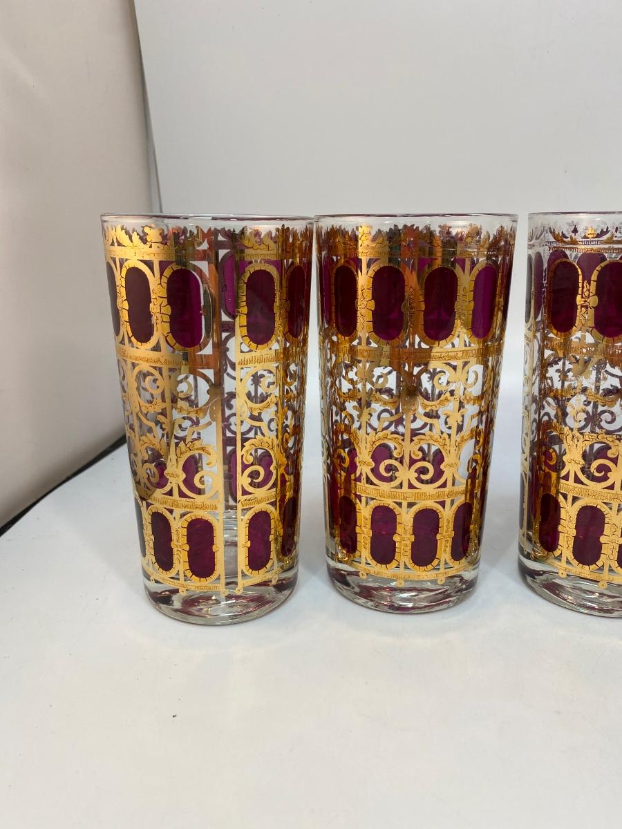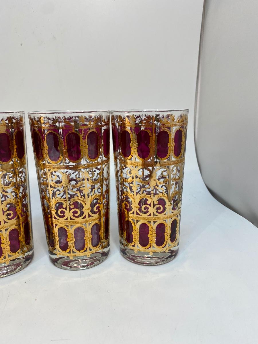 Set of 6 Mid Century MCM Culver Cranberry Scroll Red & Gold Highball Drink Glasses