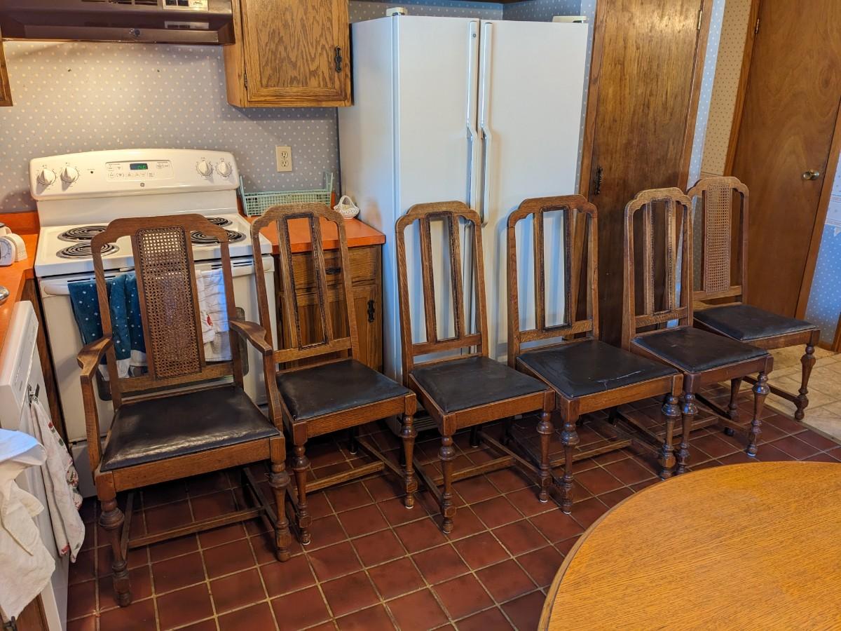 Set of 6 Oak Leather Seat Chairs