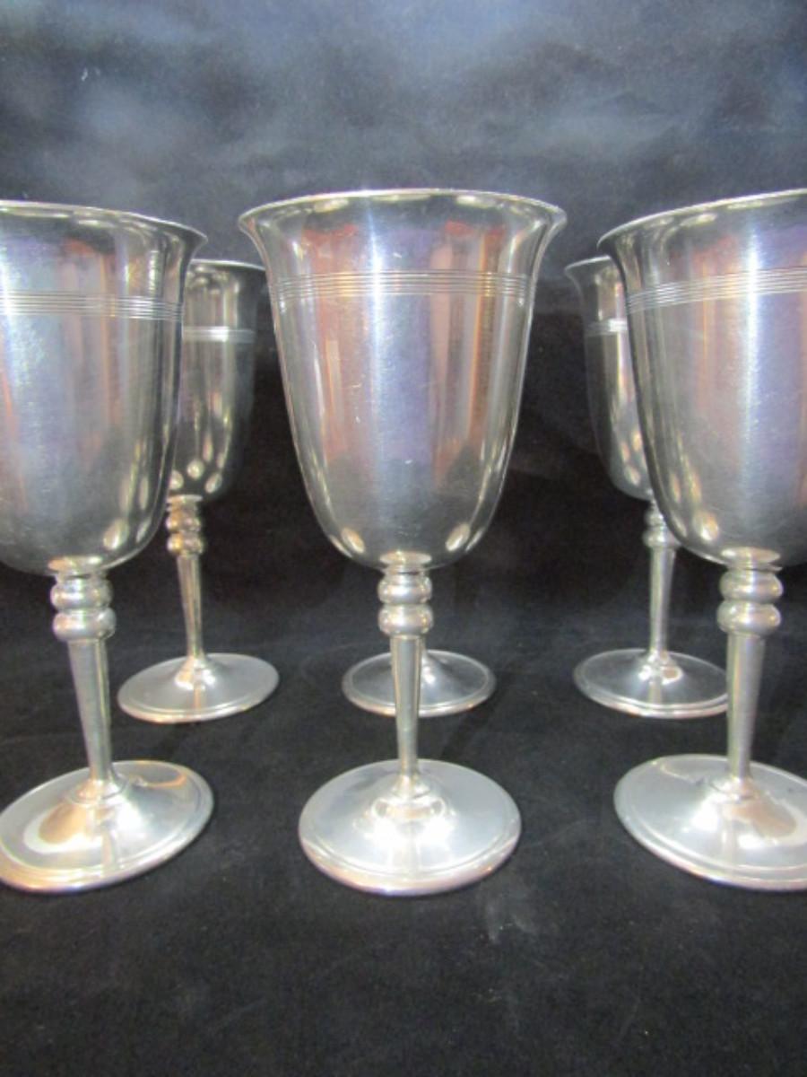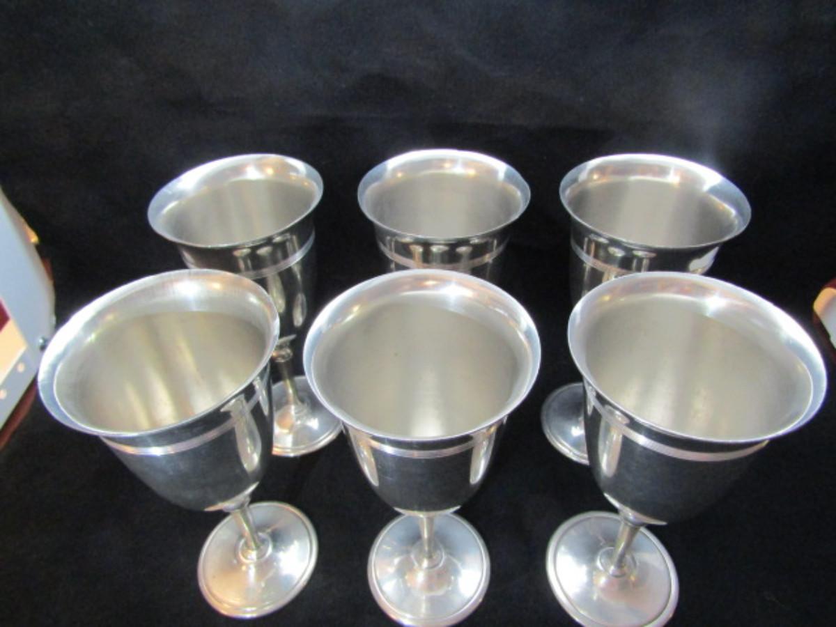 Set of 6 Pewter Wine Goblets