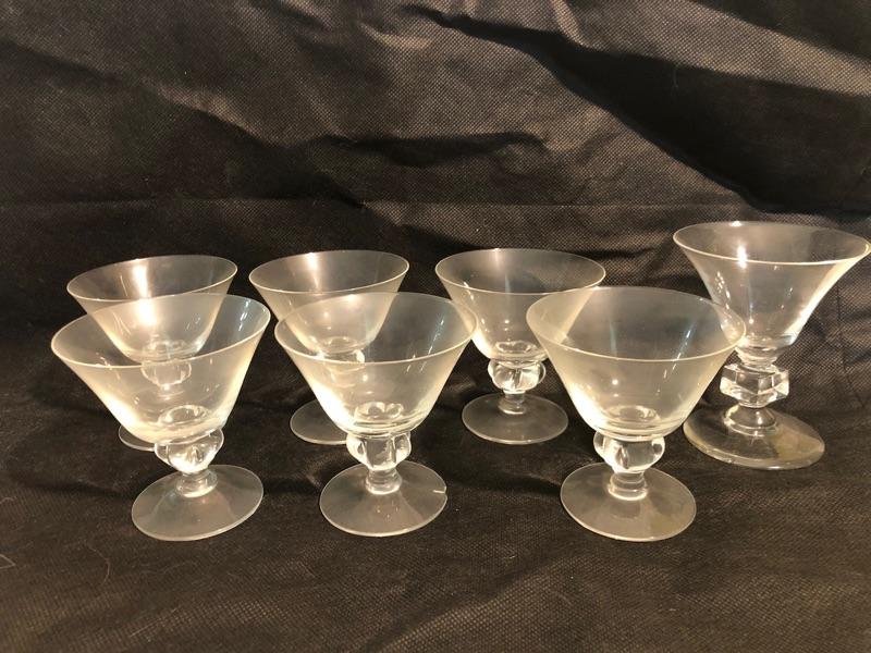 vintage crystal aperitif glasses 3.25 tall x 3.25 diameter, plus the 4in tall x 3.25 diameter extra
