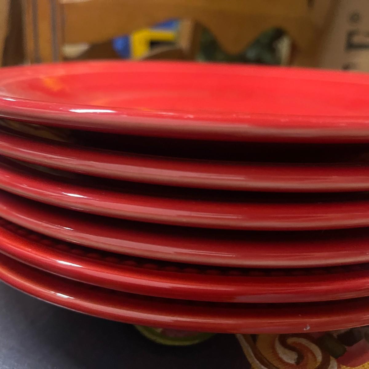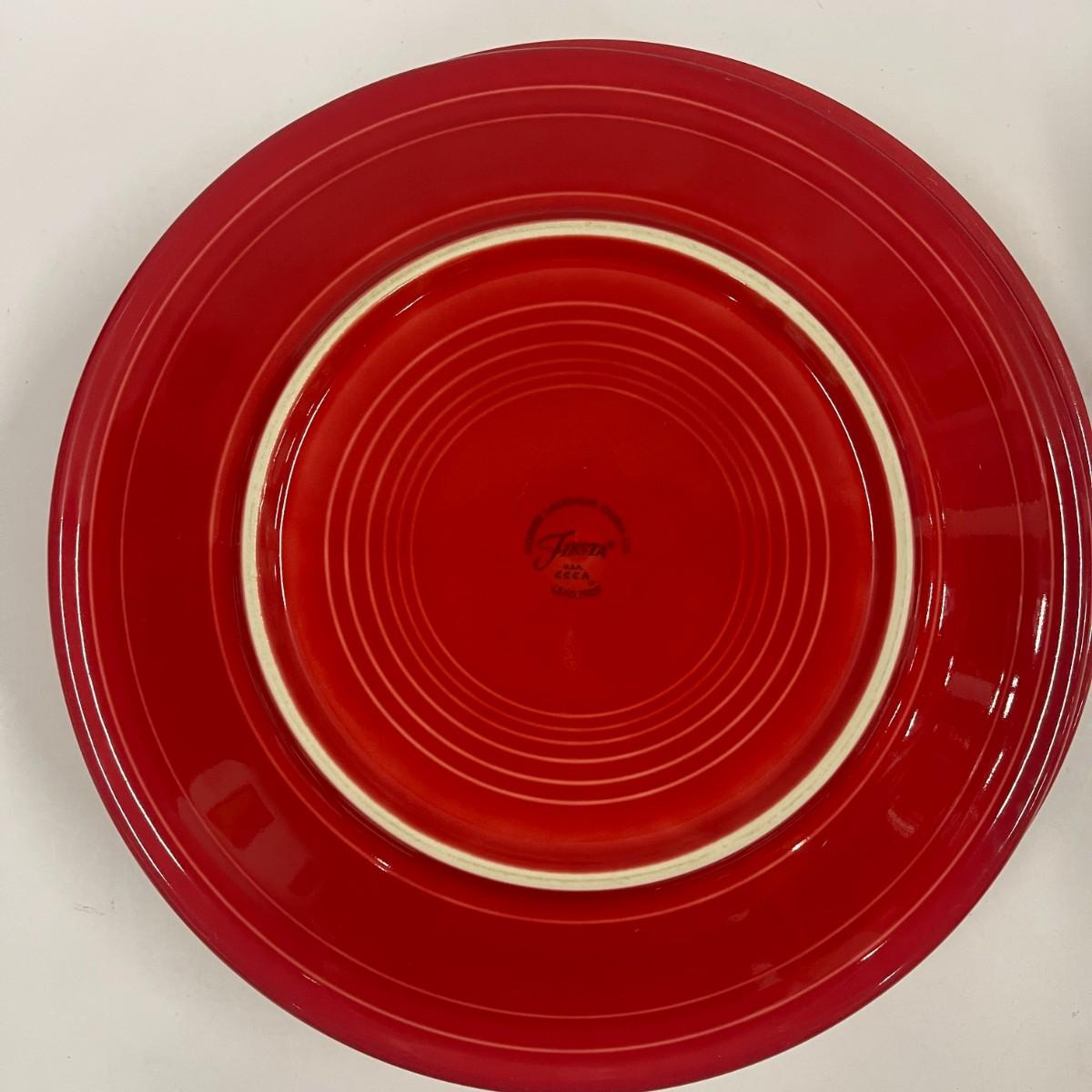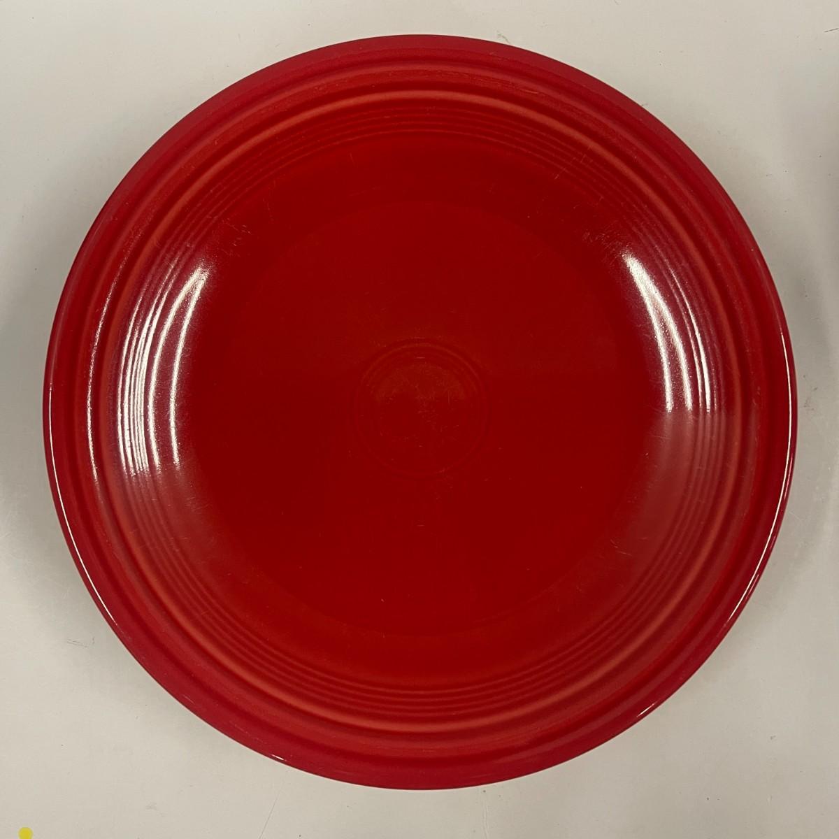 Set of 6 red Fiesta dinner plates, 10 1/2". All in very good condition with some minor knife marks.