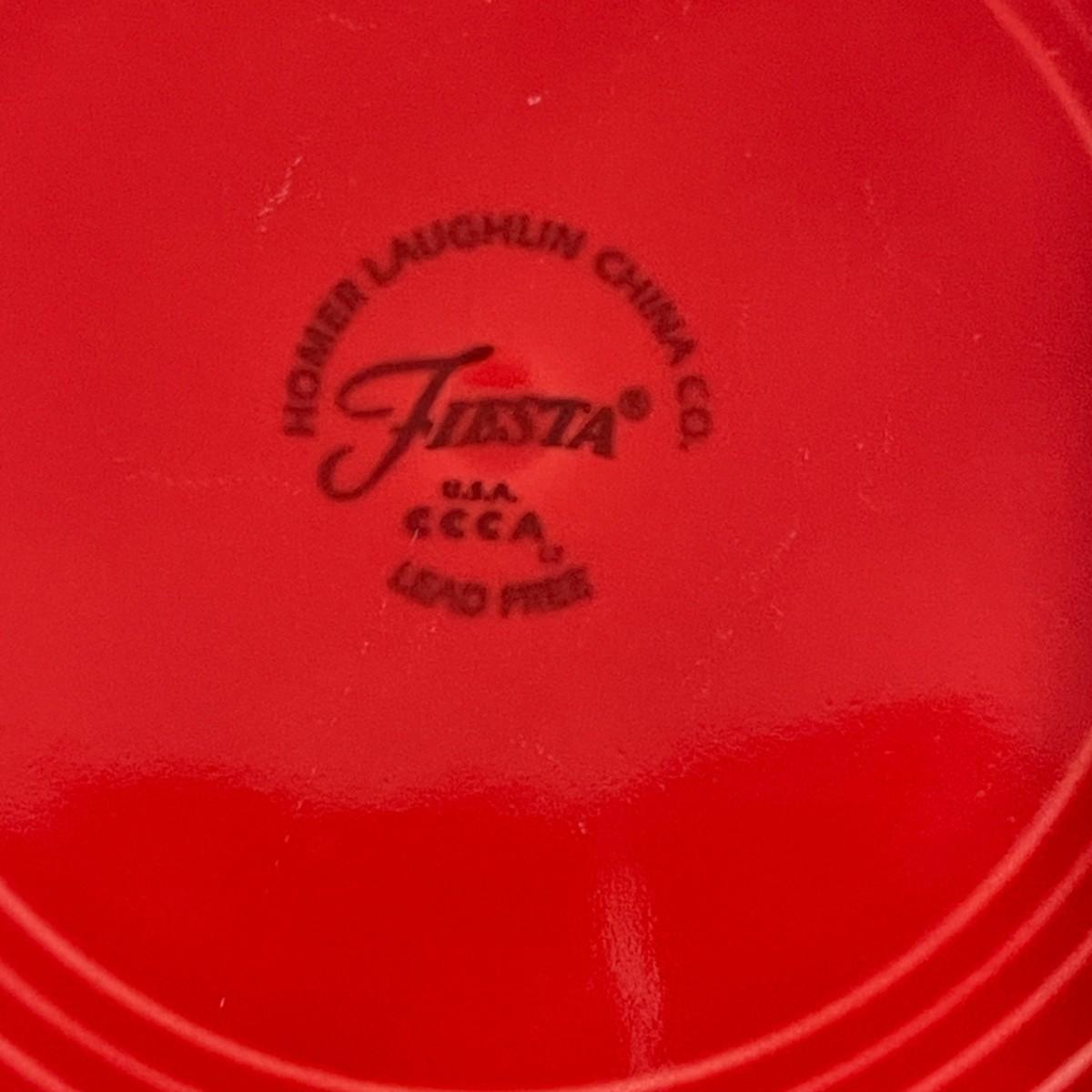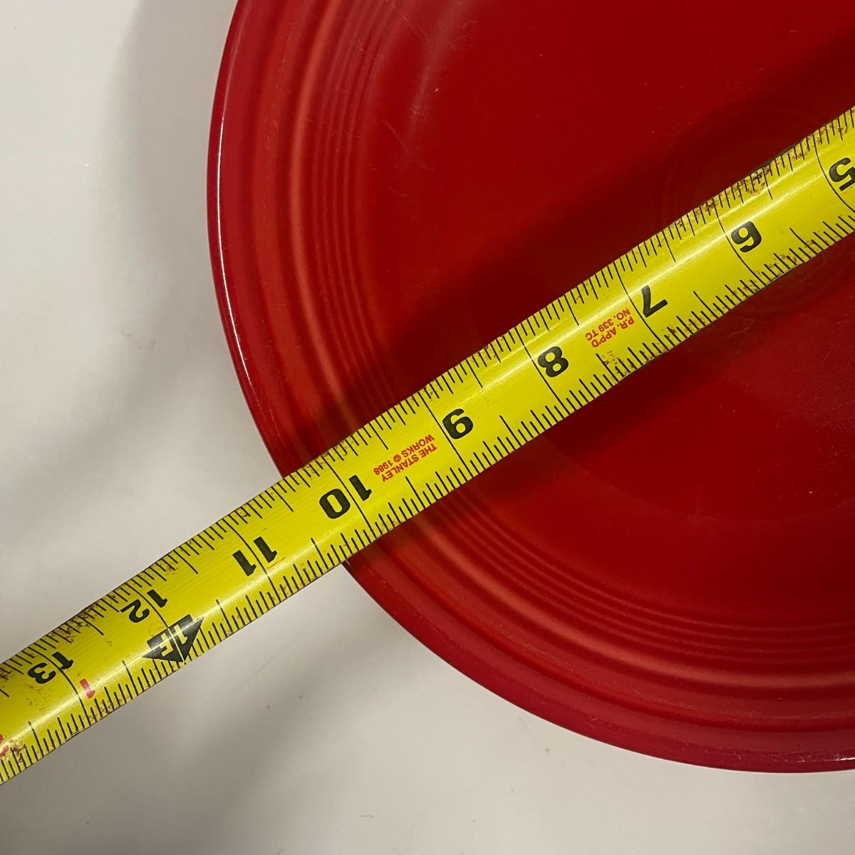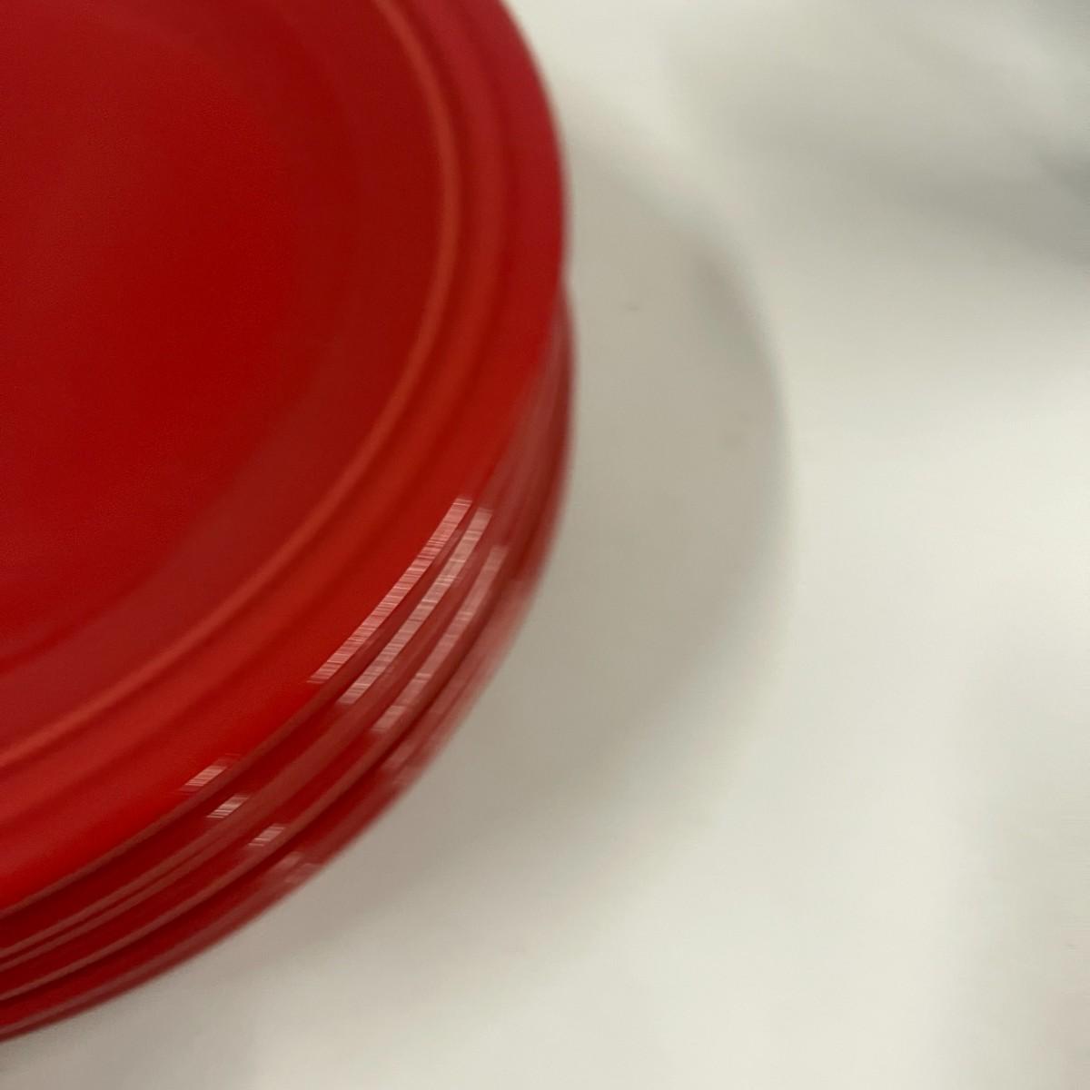 Set of 6 red Fiesta dinner plates, 10 1/2". All in very good condition with some minor knife marks.
