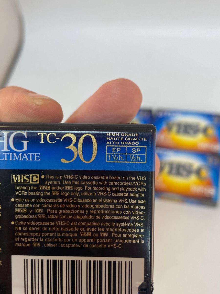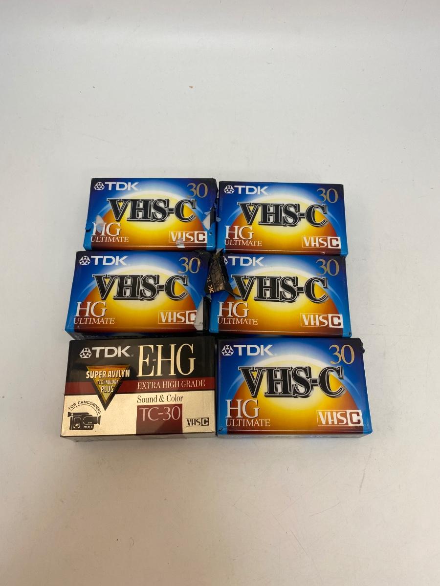 Set of 6 Retro VHS-C Video Cassette Tapes. New, unused. One has different packaging but looks to be the same or very similar to the rest.