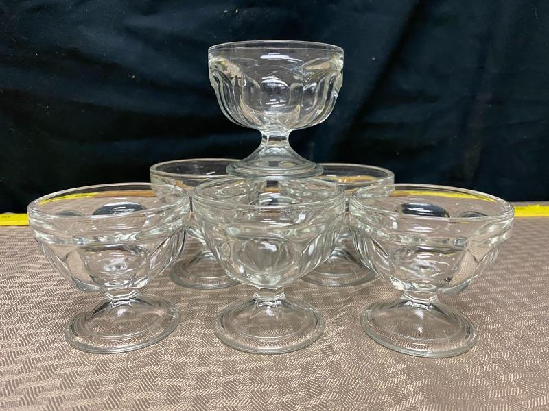 6 small ice cream dishes. Footed bowls under 3" tall. Good condition.