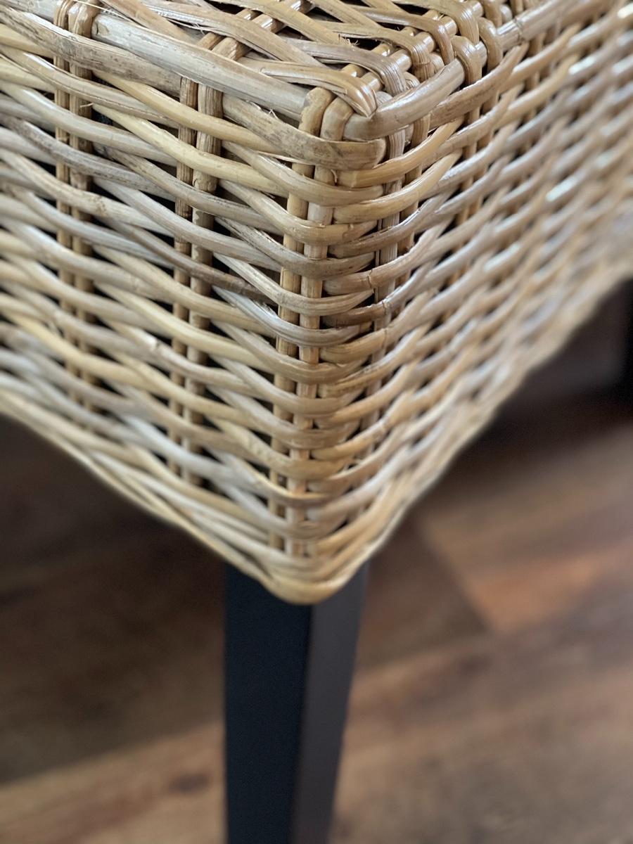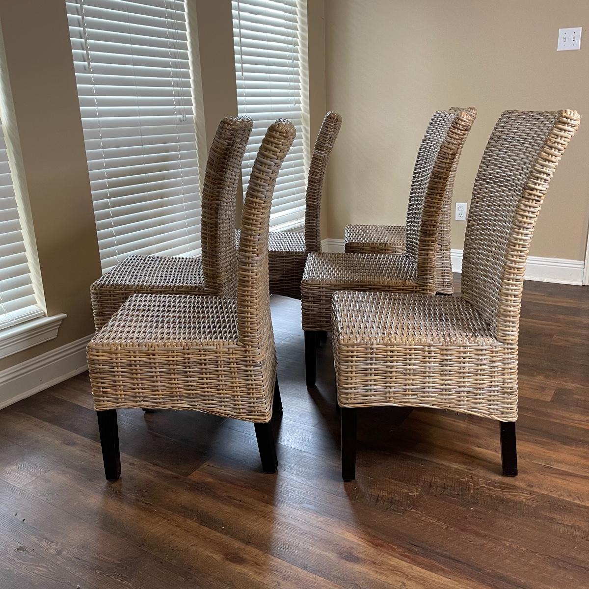 Parson style wicker chairs. Espresso legs.