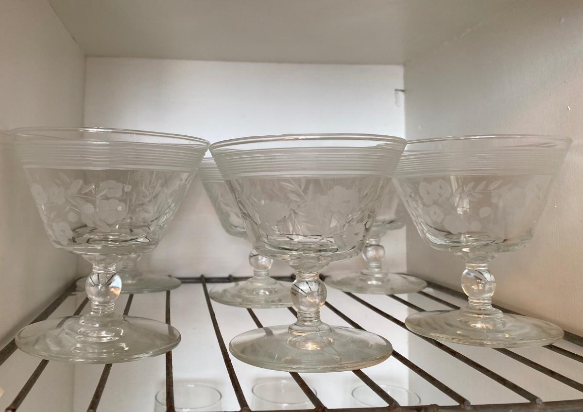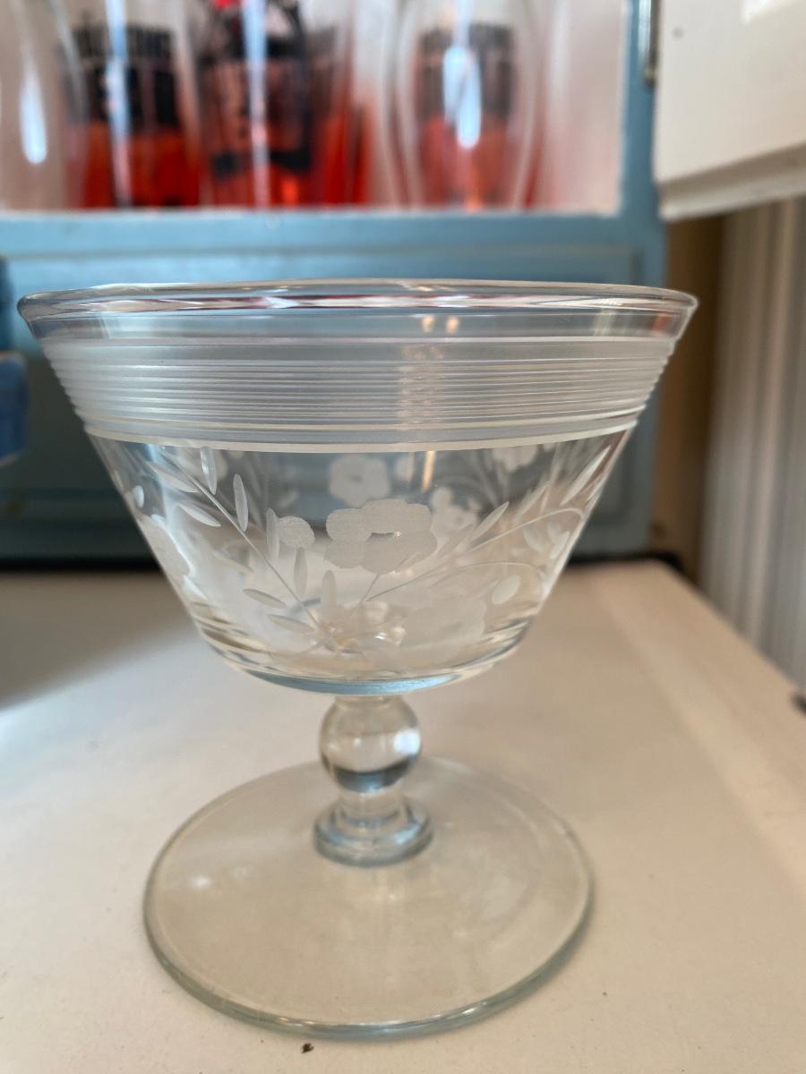 Set of 6 vintage Caprice etched sherbet glasses by Rock Sharpe. Excellent condition. 4”h