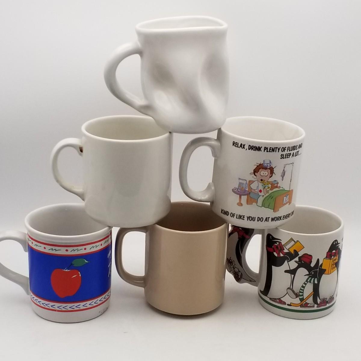 Set of 6 Vintage Ceramic Novelty Mugs: