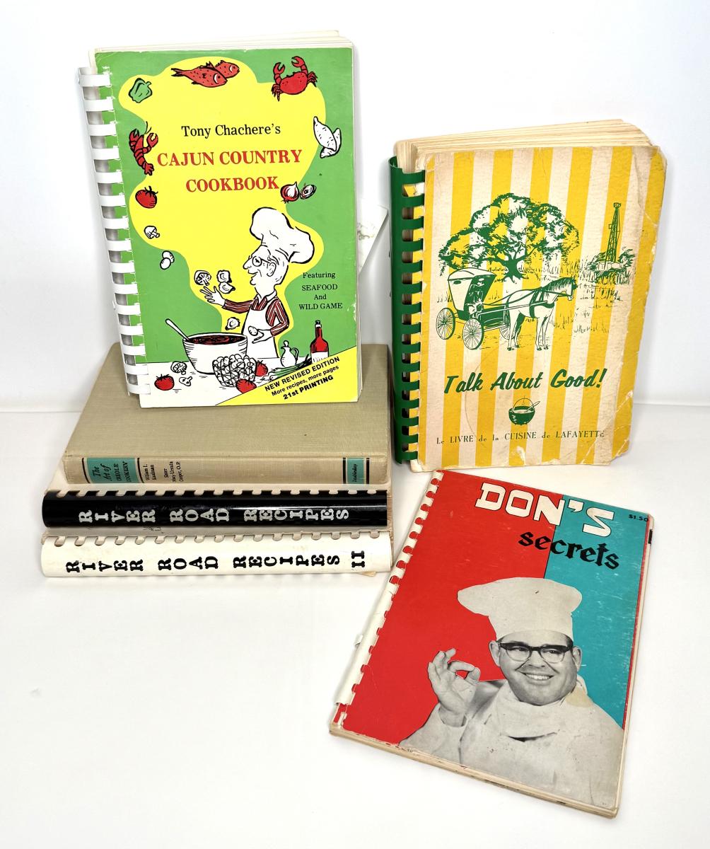 Set of 6 Vintage Cookbooks - River Road I and II, Don's Secrets, Tony Chachere's, Talk About Good, The Art of Creole Cookery