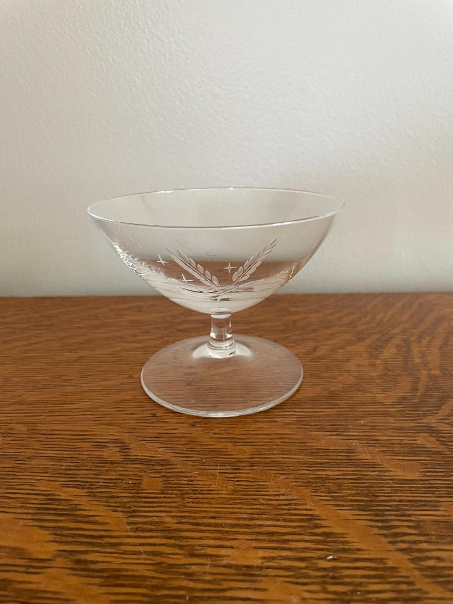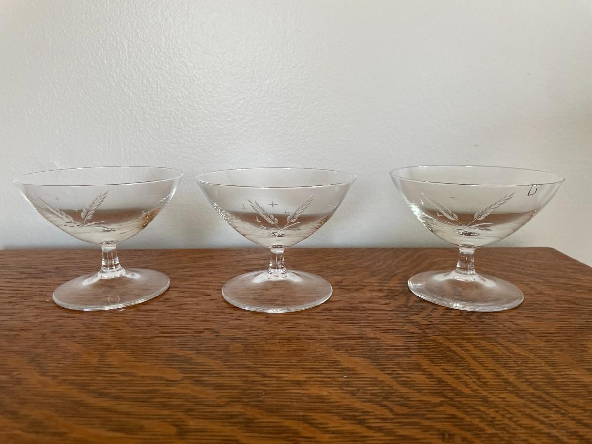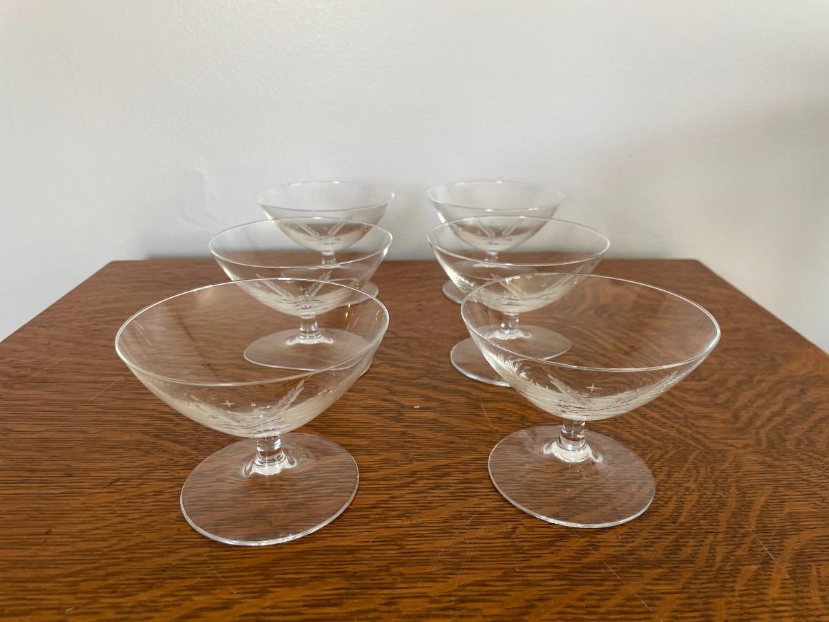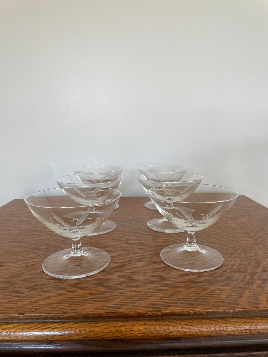 Set Of 6 Vintage Etched Crystal Stem Dessert Bowls / Sherbet Bowls