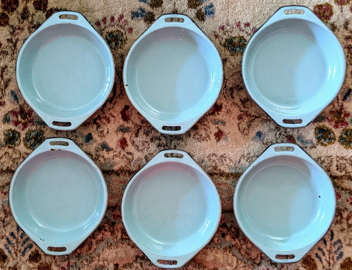 Set of 6 Vintage French enamel bowls Robin's egg blue