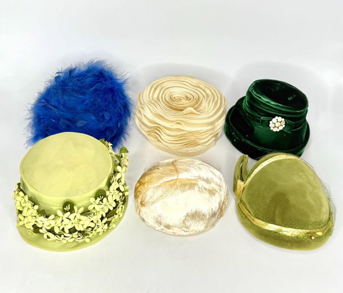 Set of 6 Vintage Hats - Pill Box, Bucket, Skull Cap