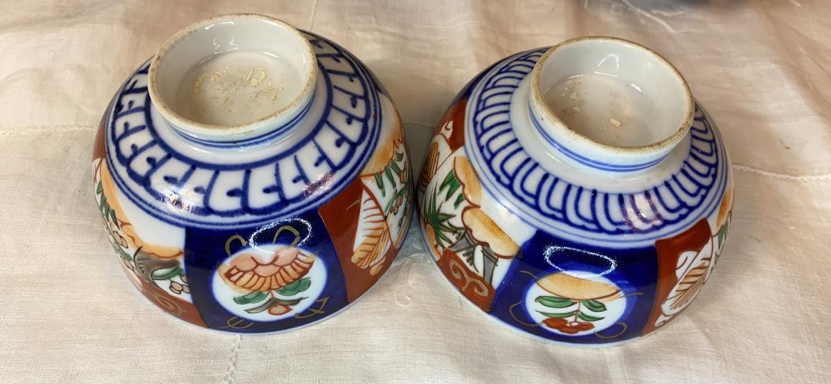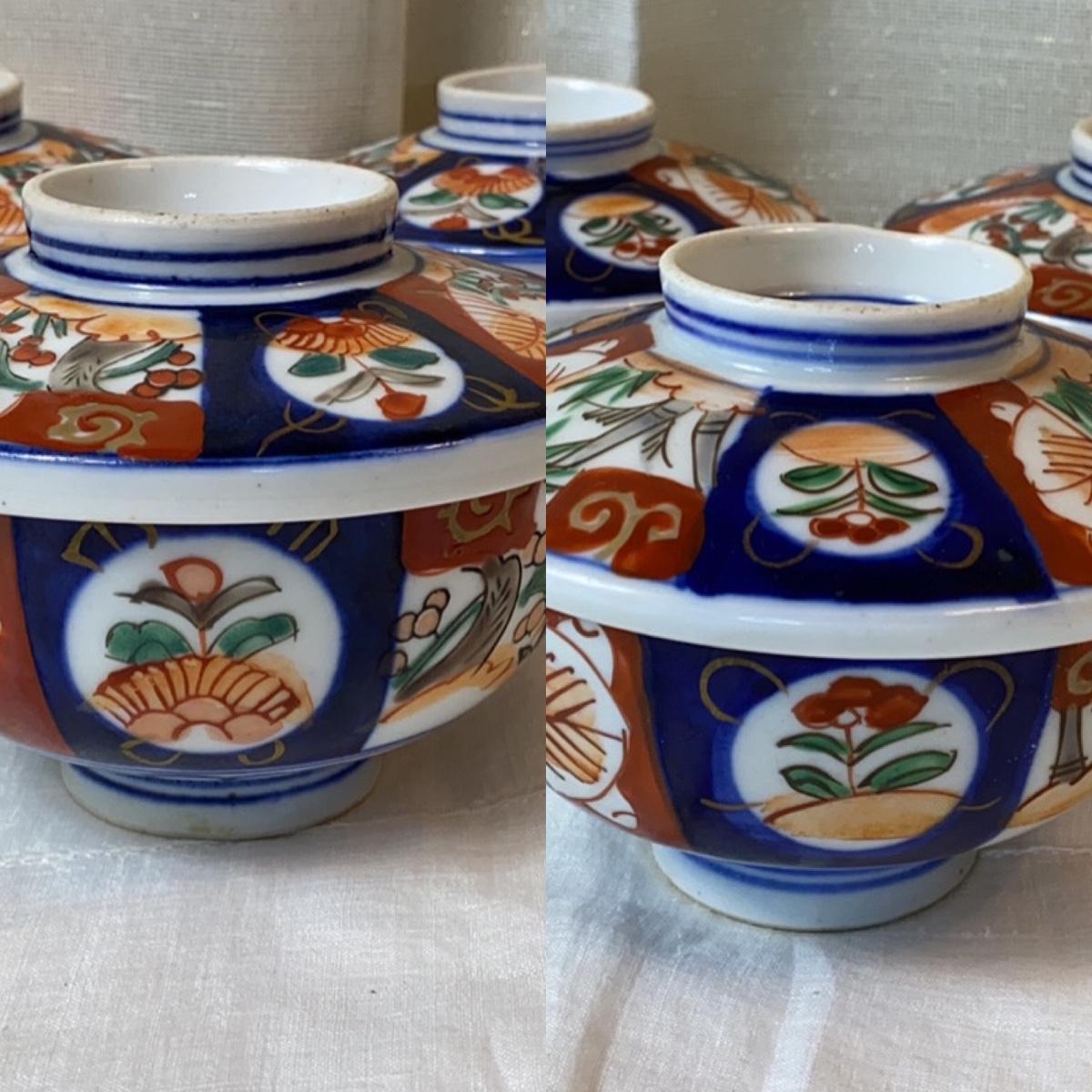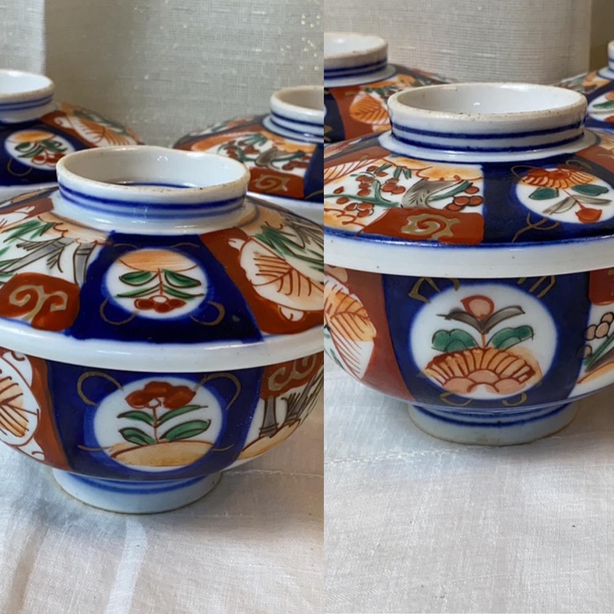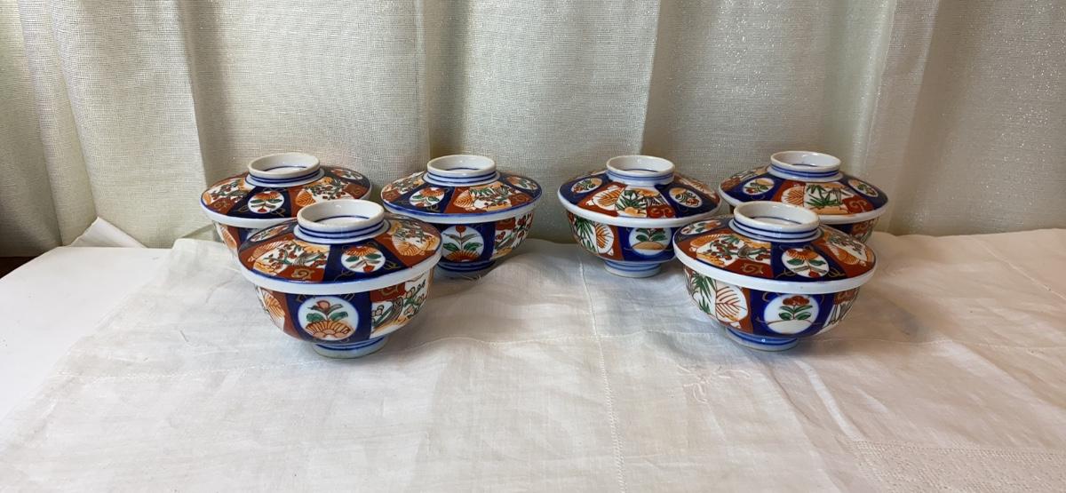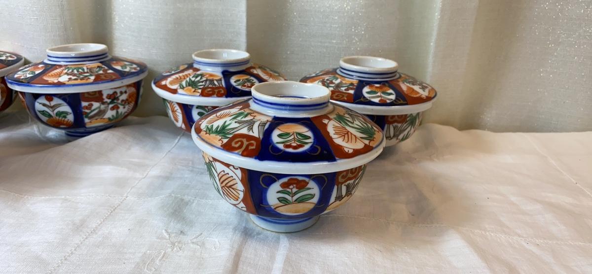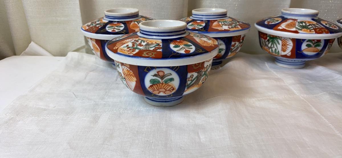 Set of 6 Vintage Imari Japanese Rice Soup Bowls With Lids