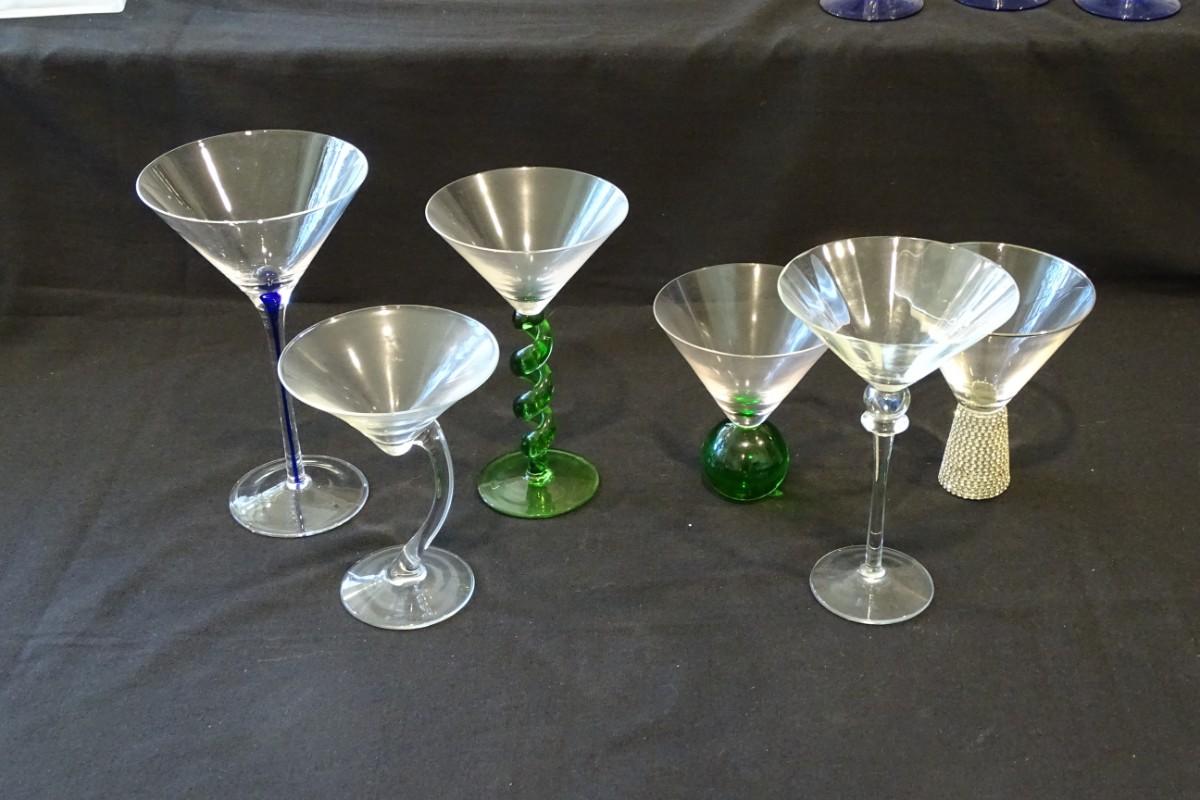 Set of (6) Vintage Martini Glasses; x1 Bubble Base, x1 Twiseted Spiral Stem