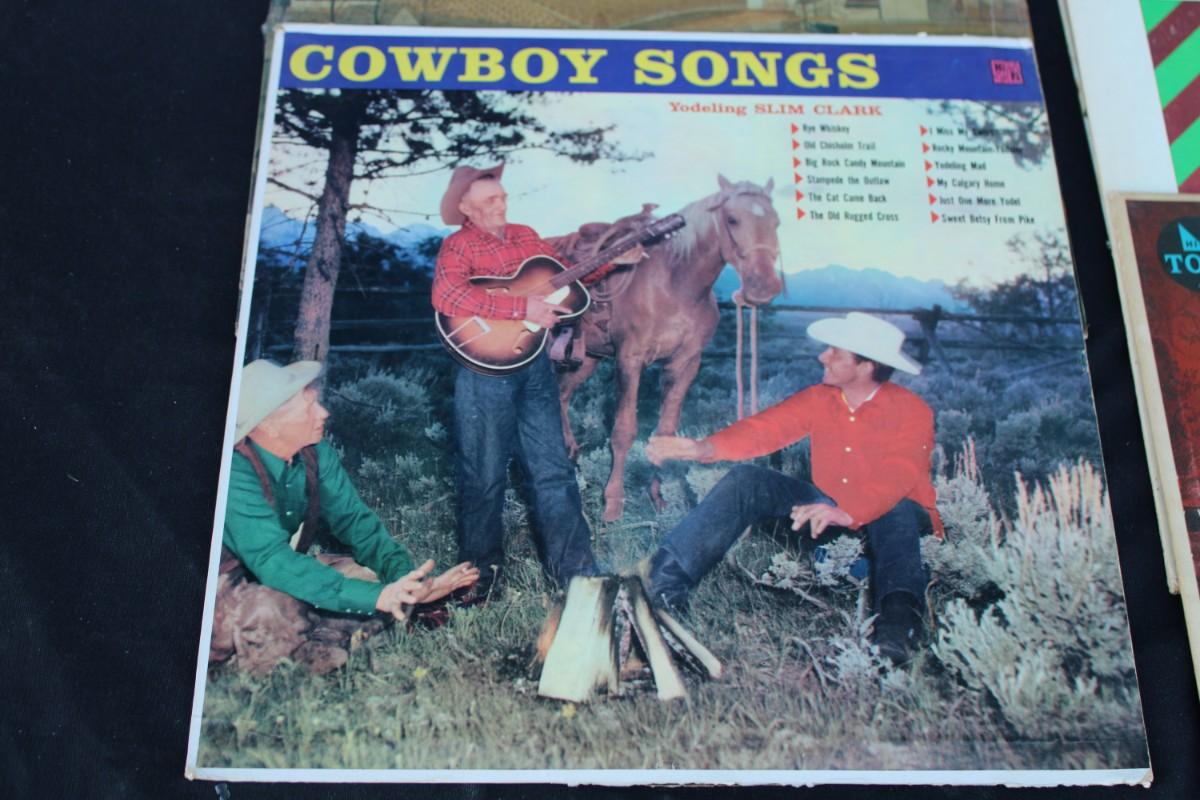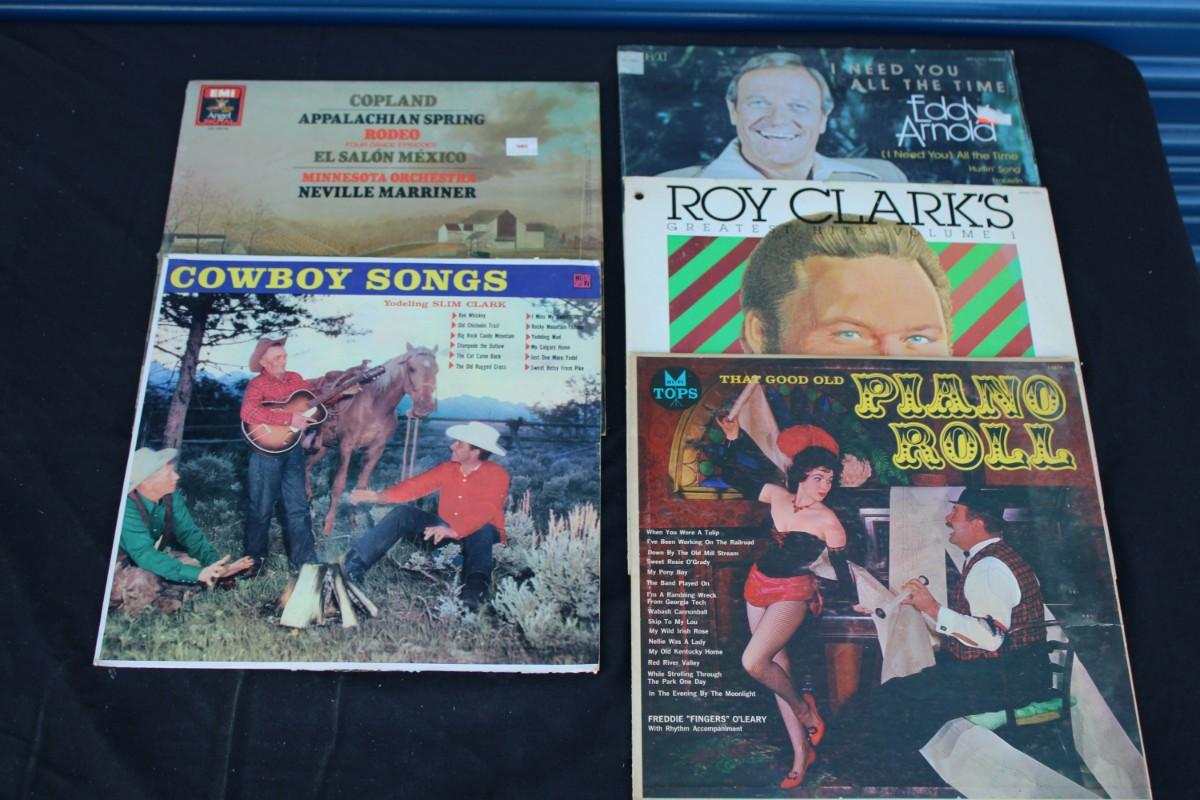 Set of 6 vintage records, good condition, signs of age - Roy Clark, Cowboy Songs and Piano Roll