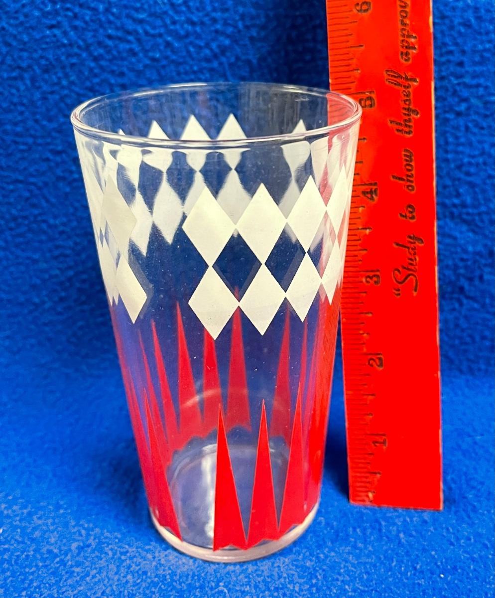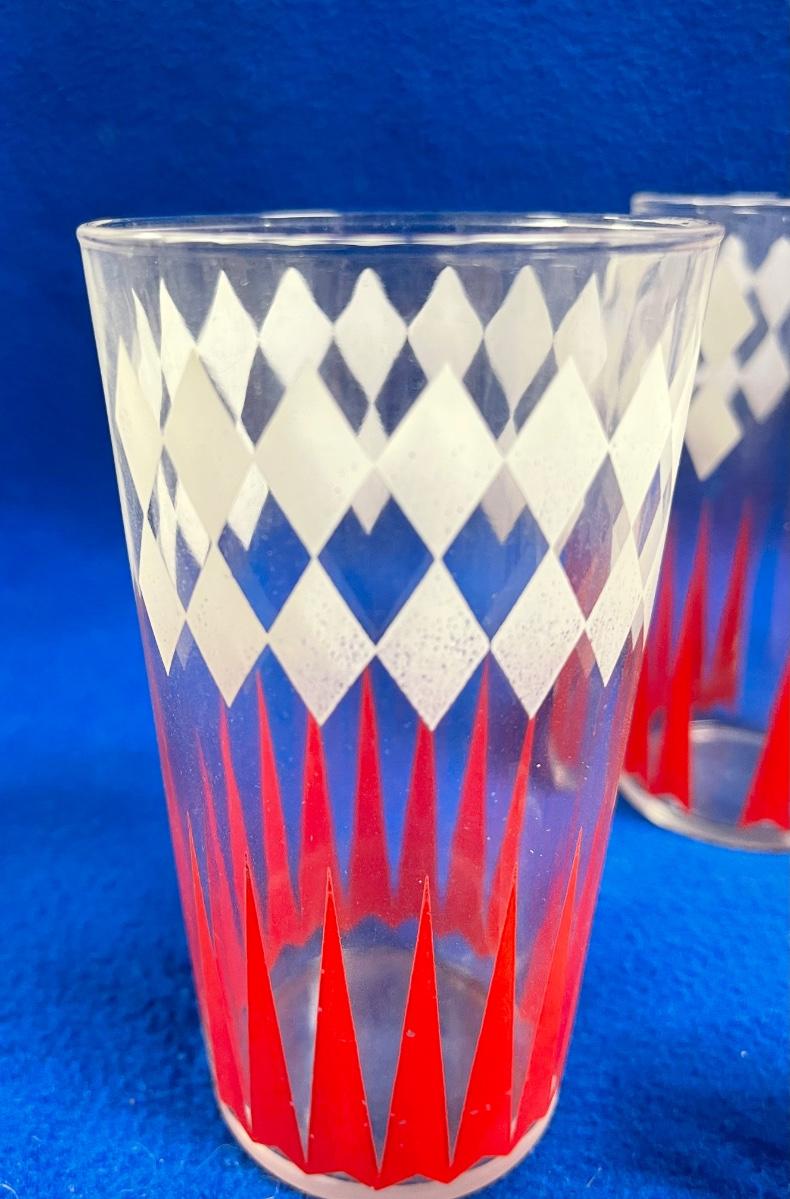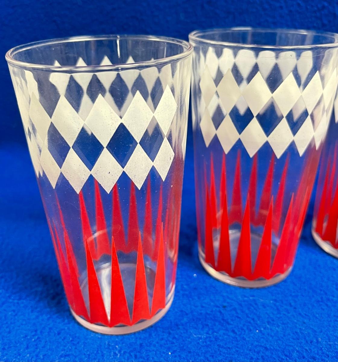 Set of 6 Vintage Retro MCM Midcentury Mod Red and White Geometric Print Drink Glasses
