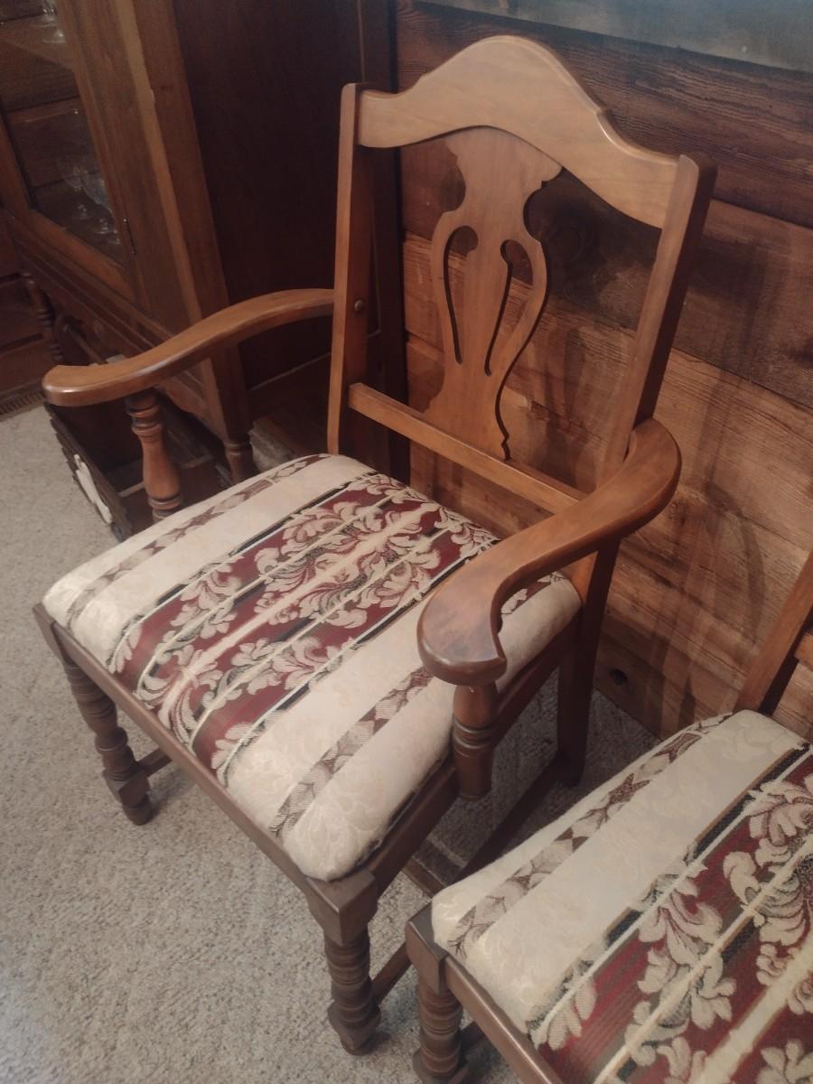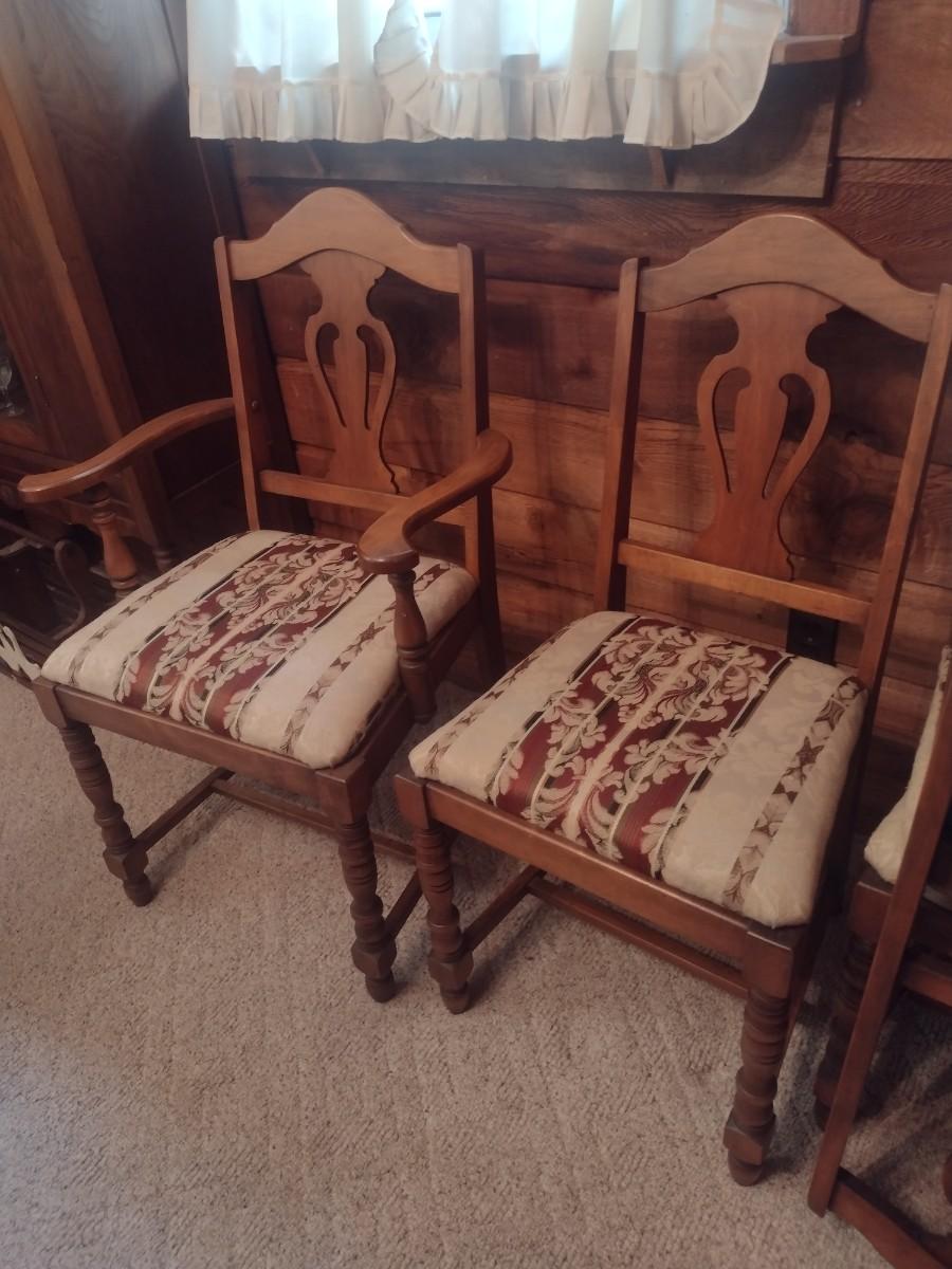 Set of 6 Walnut Urn Back Dining Chairs with Upholstered Seats includes One Carver Chair