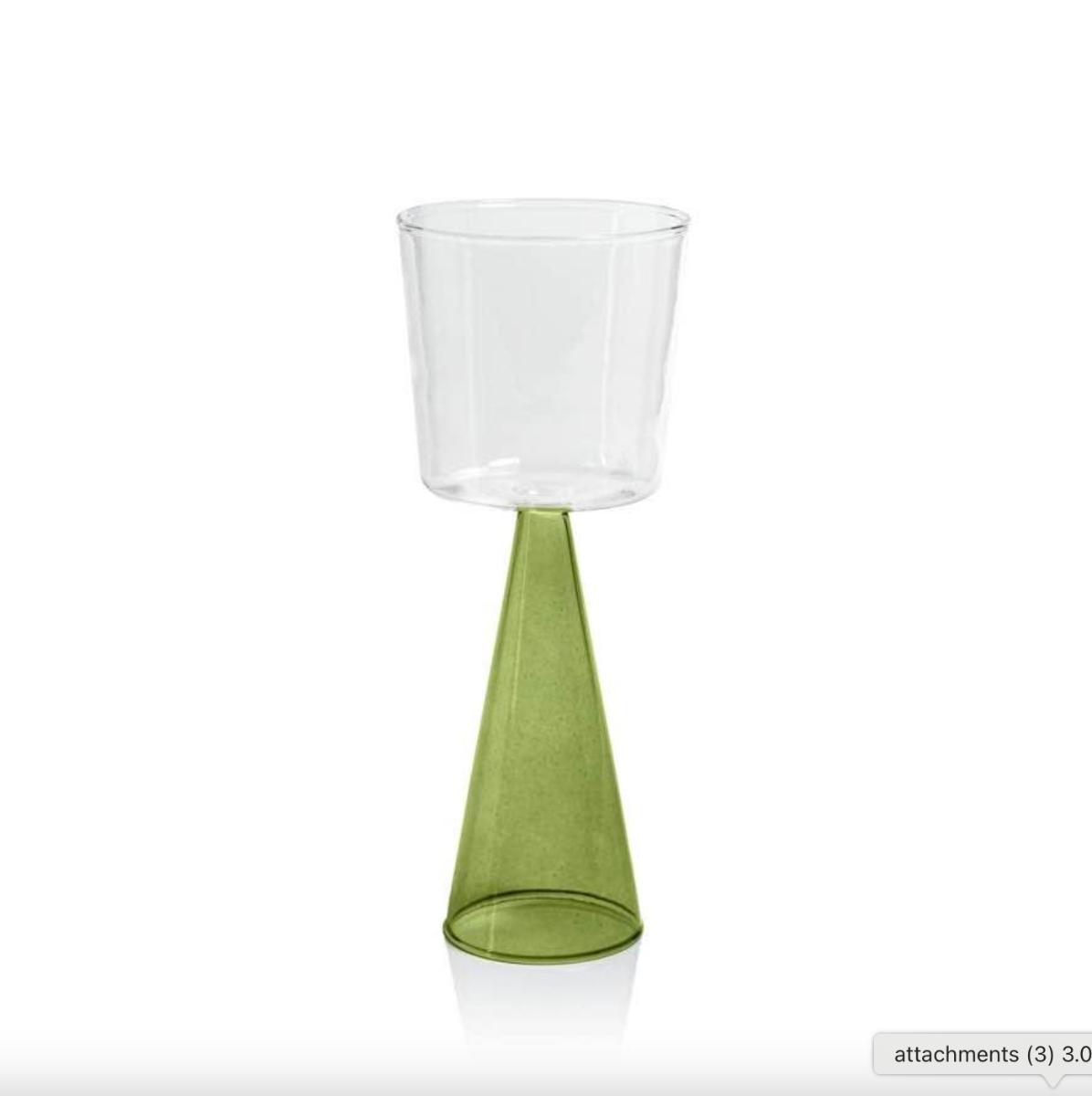 Set of 6 Zodax Veneto Borosilicate Glass Red Wine Glasses in Clear & Green Glass