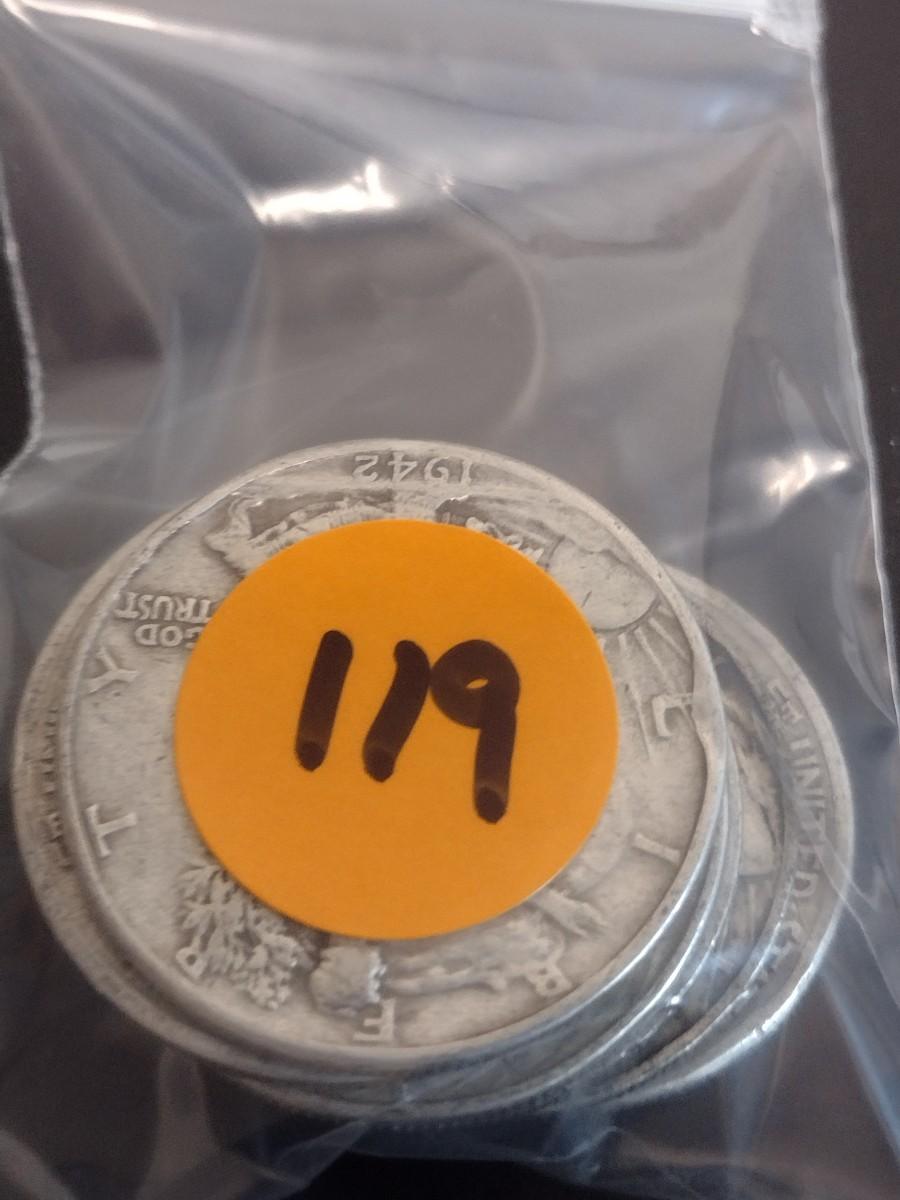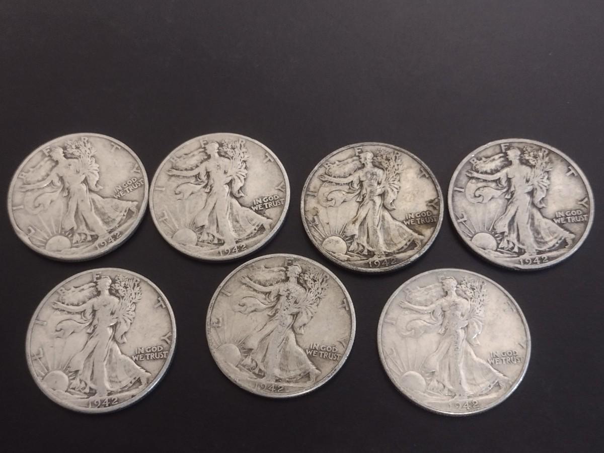 Set of 7 1940's U.S. Mint Walking Liberty Silver Half-Dollars Circulated (#119)