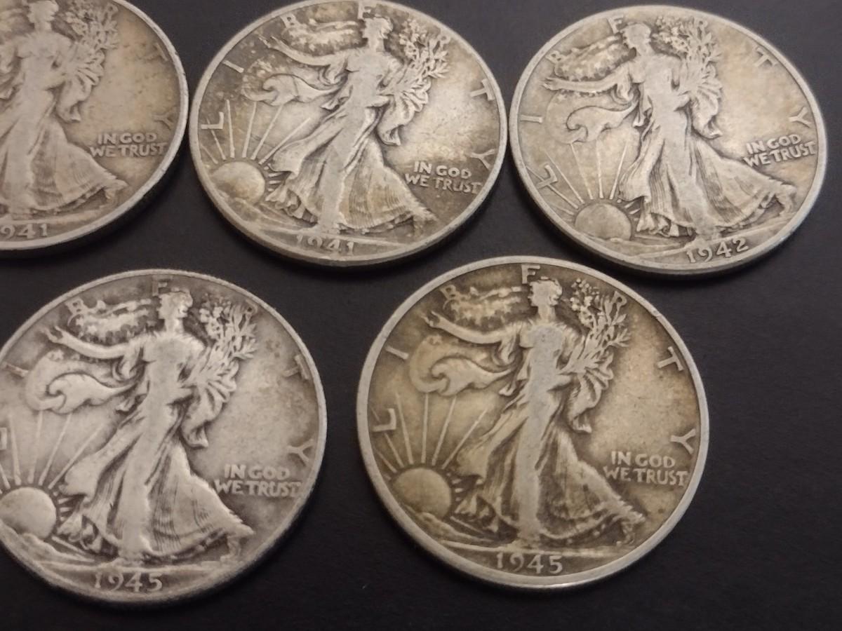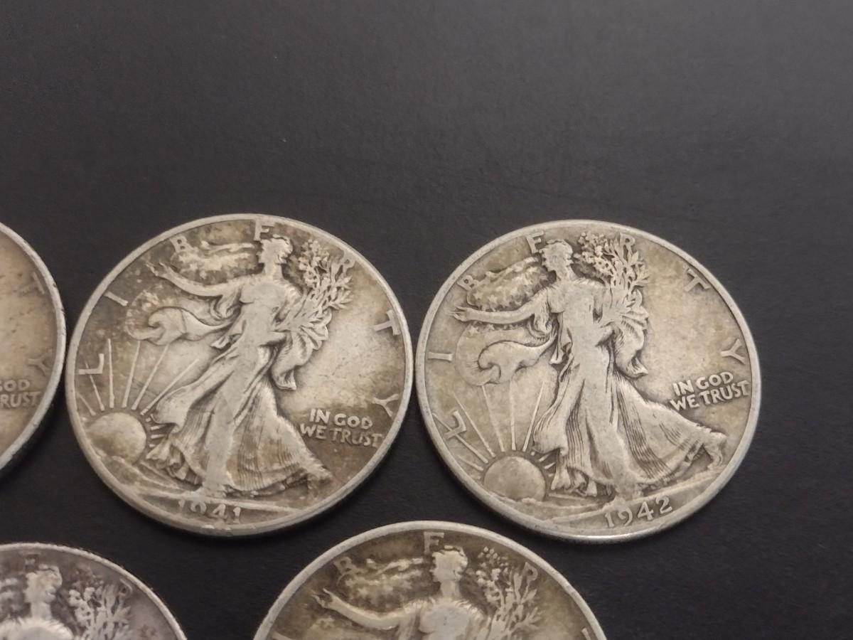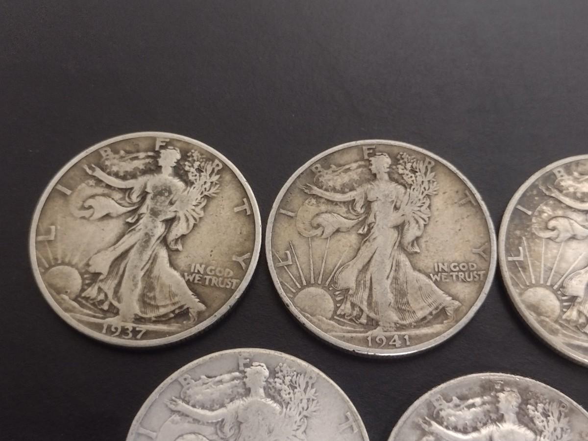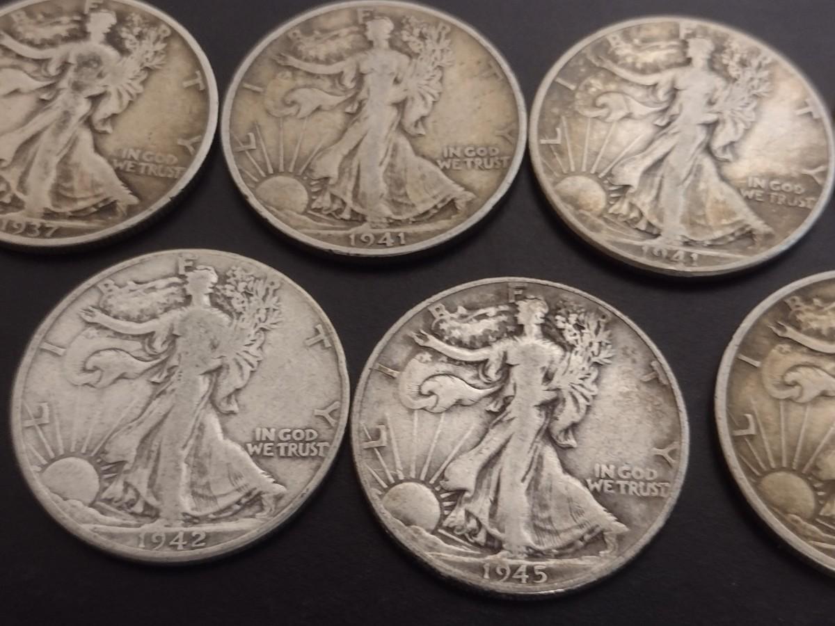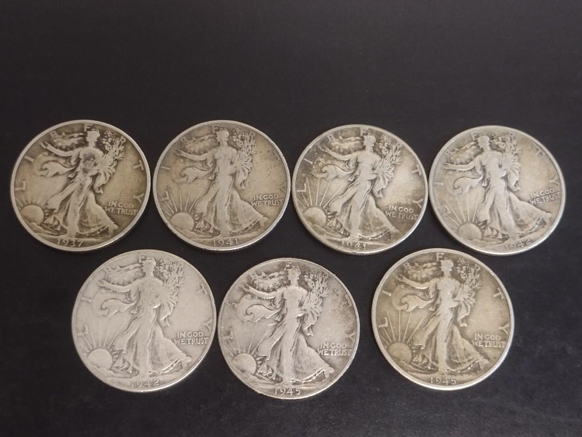 Set of 7 1940's U.S. Mint Walking Liberty Silver Half-Dollars Circulated (#127)