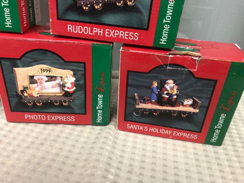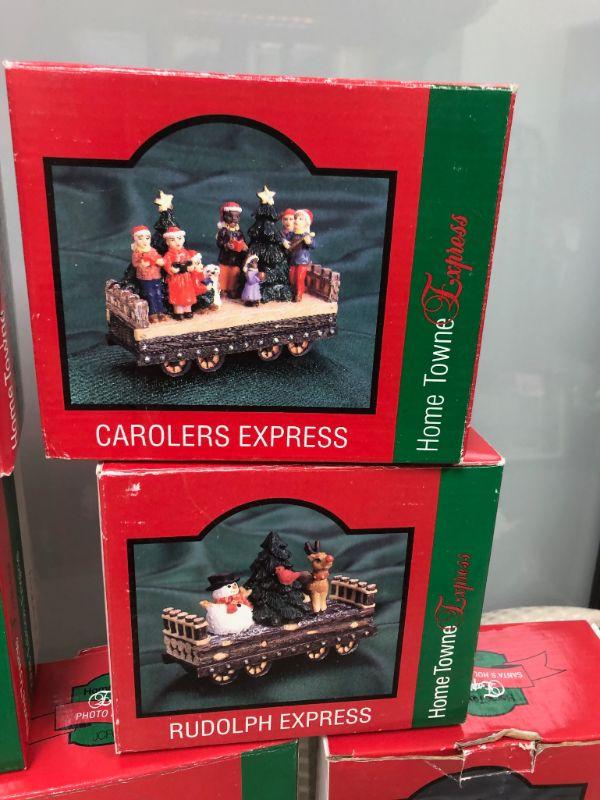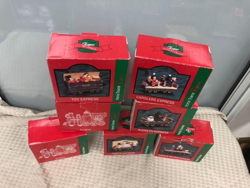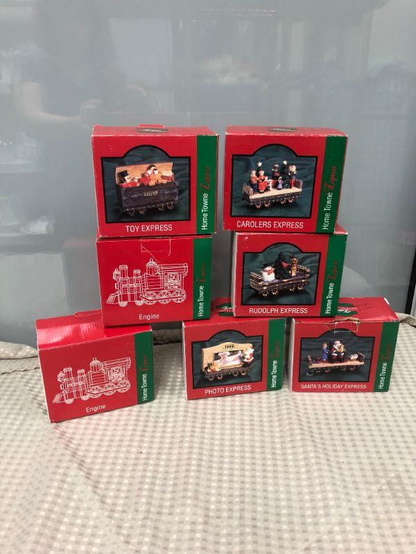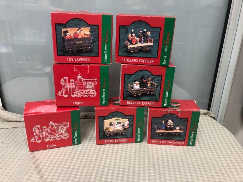Home Towne Express Christmas Train. 7 pieces, there is two engine cars. In original packaging. Exclusive for JC Penny 1999.
