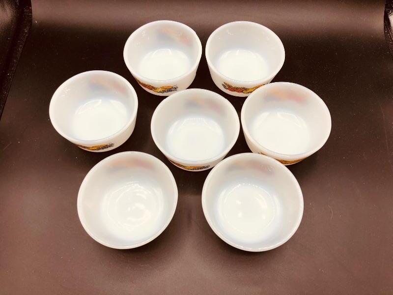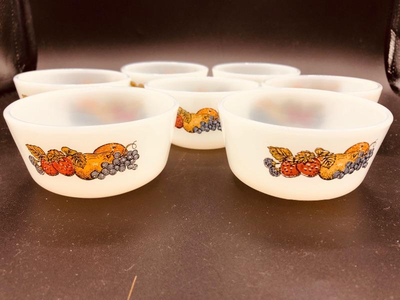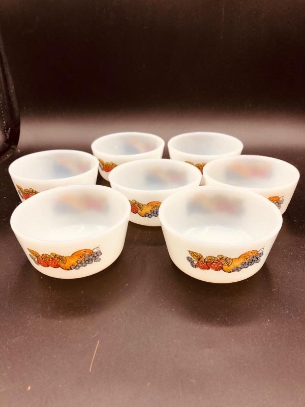 Set of 7 Fire King Nature's Bounty Fruit Pattern Ramekins