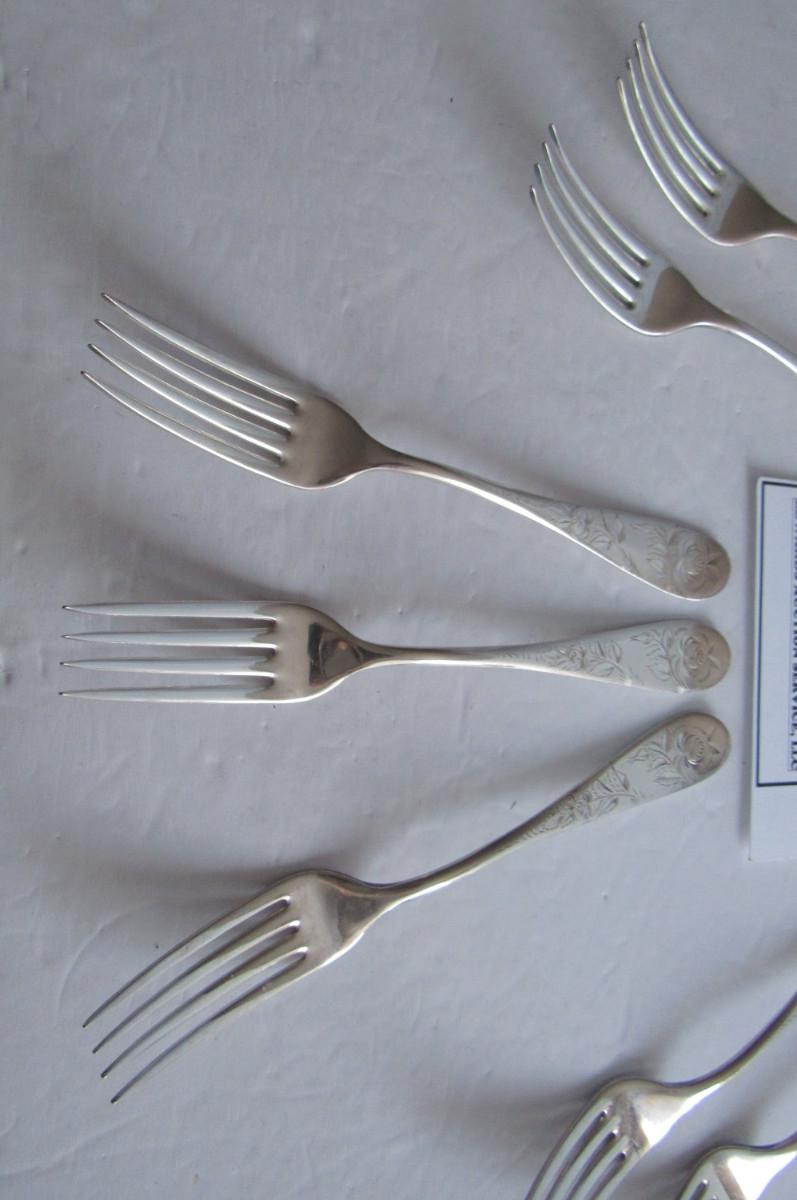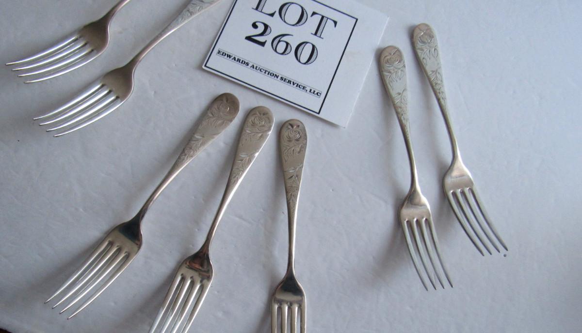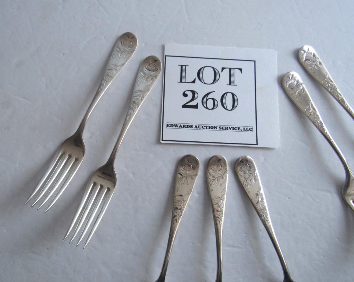 Antique Dinner Forks, Jac Rose Pattern, Sterling Inlaid, Holmes and Edwards, Set of 7