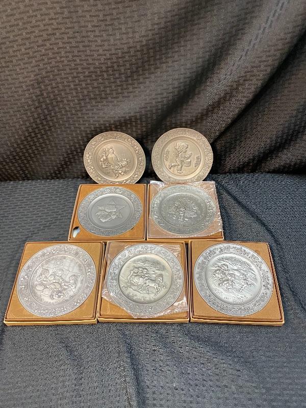 Set of 7 Vintage Hallmark Pewter Christmas Plates YD#012-1120-00090