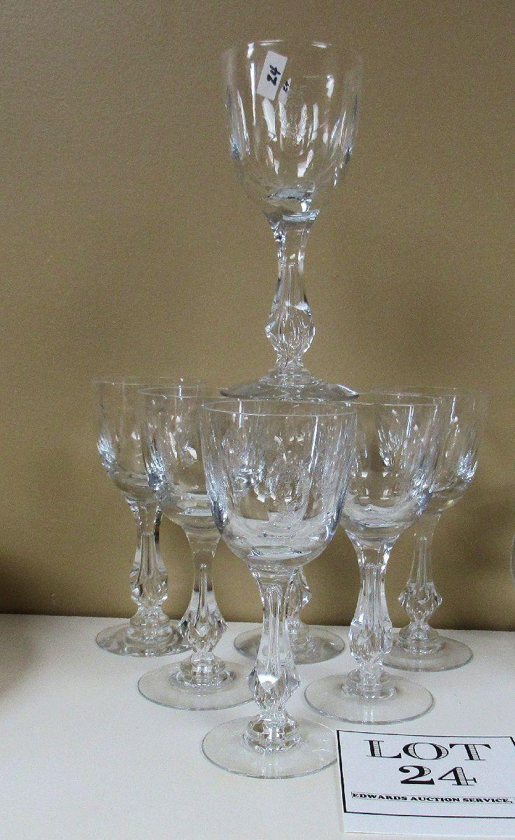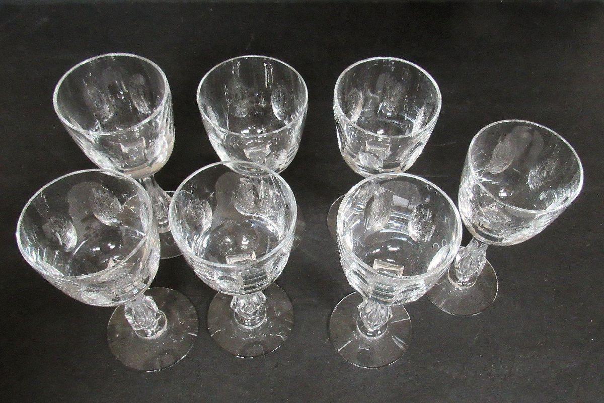Vintage Tiffin Palias Versailles Set of 7 Vintage Matching Etched Tall Wines, 6 3/4" Tall