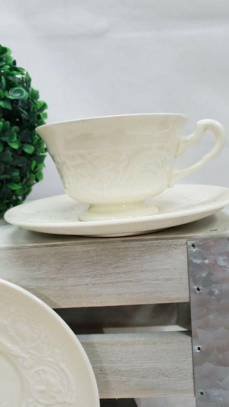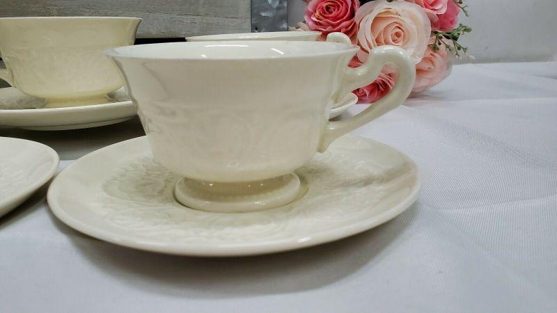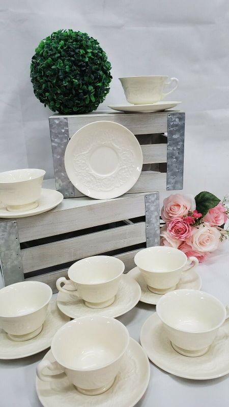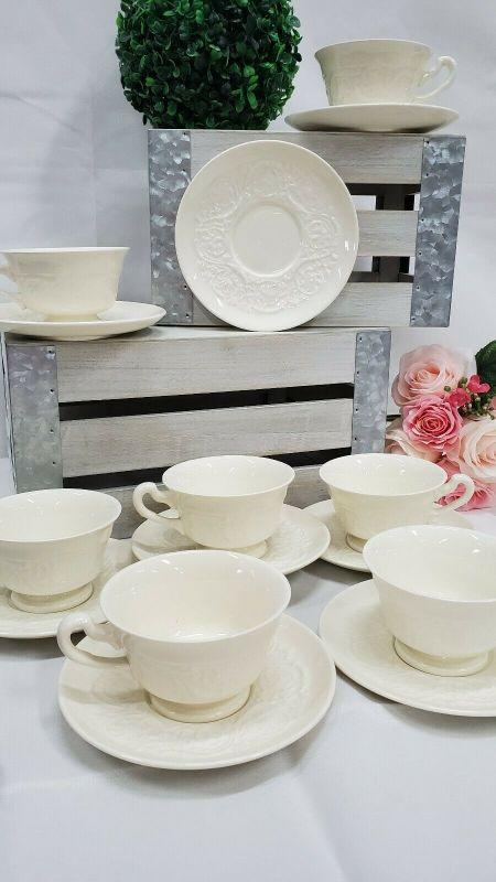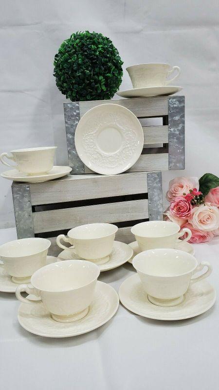 Set of 7 Wedgwood & Barlaston of Etruria Patrician Footed Tea Cups & Saucers