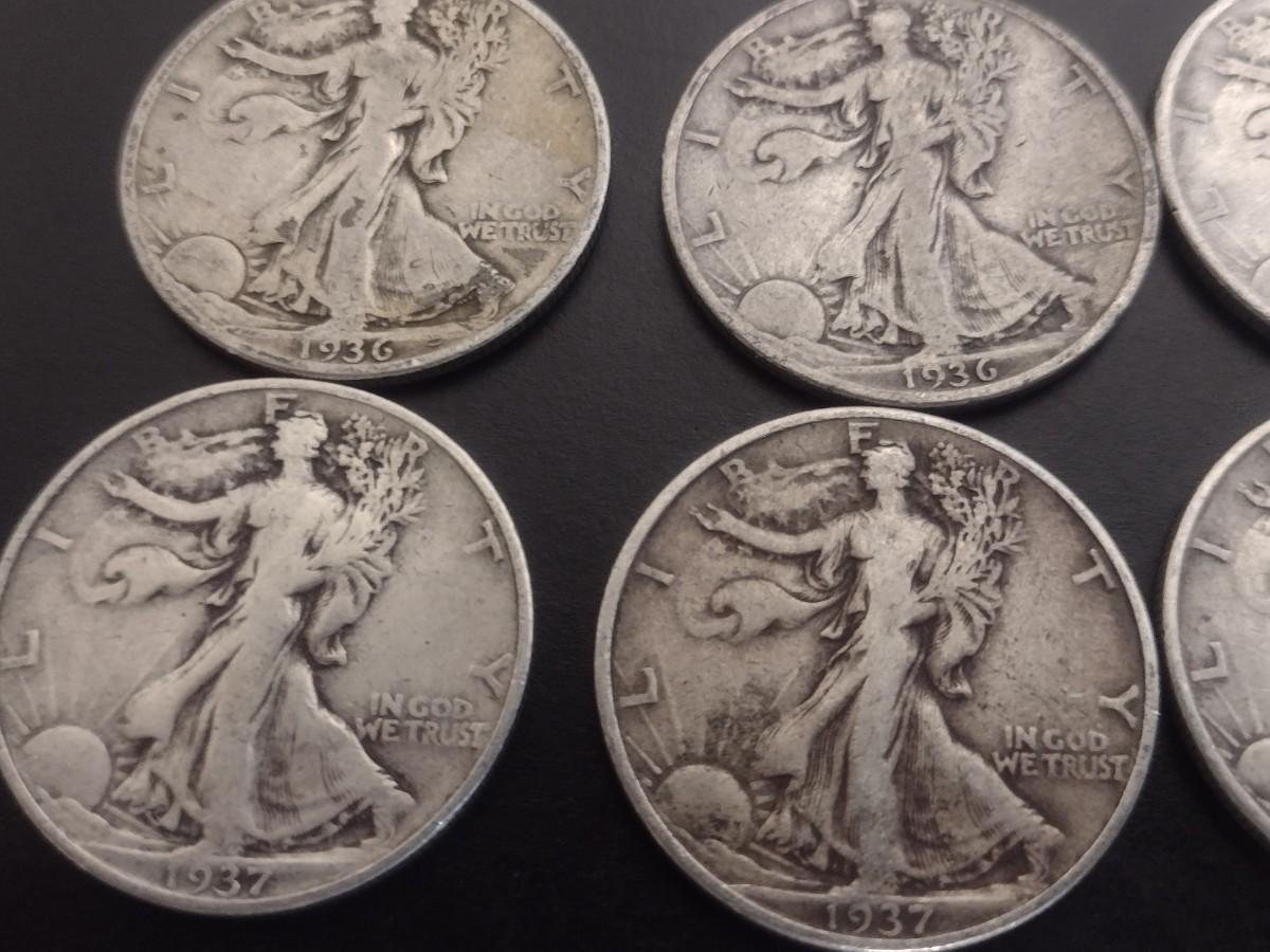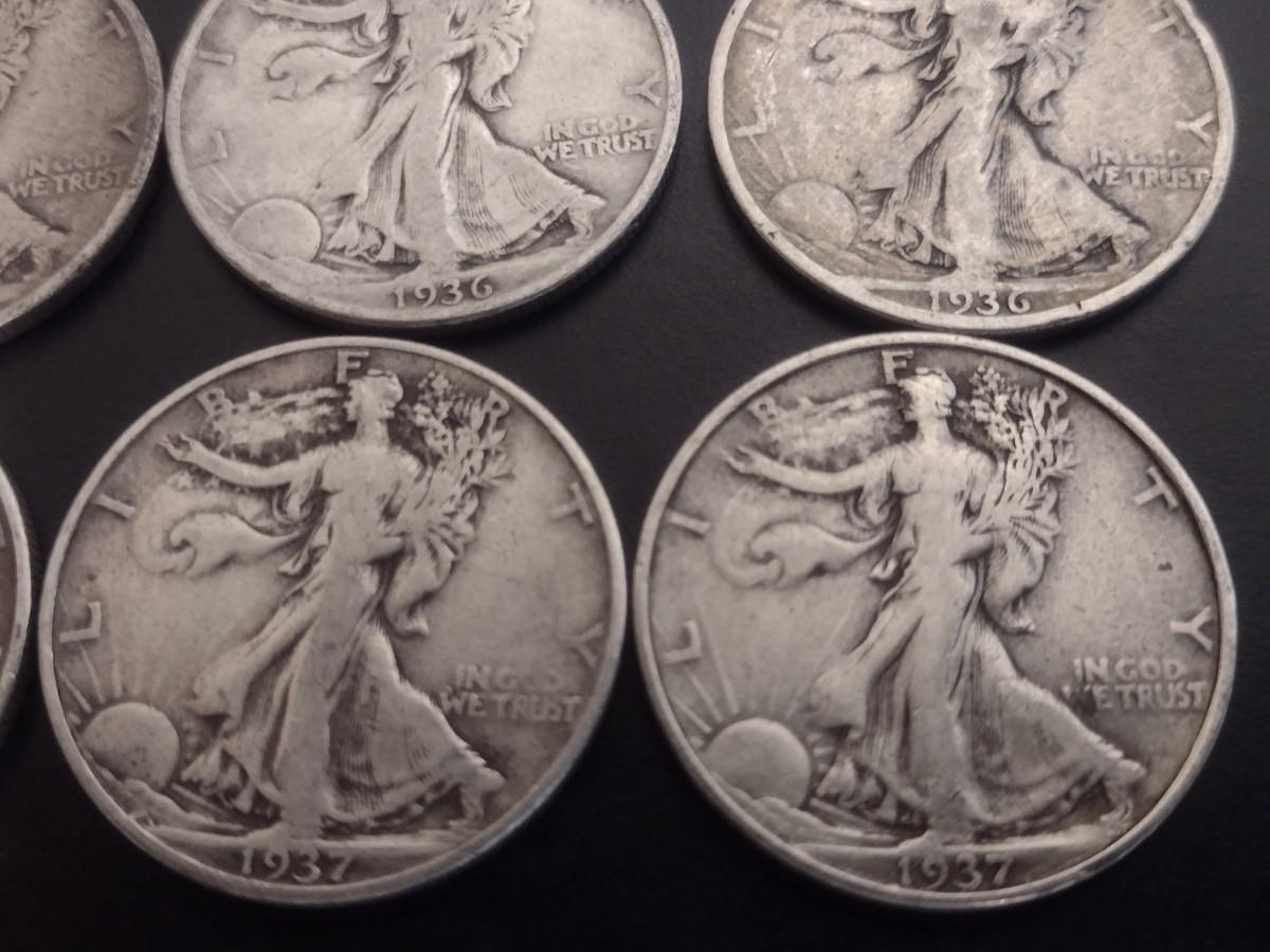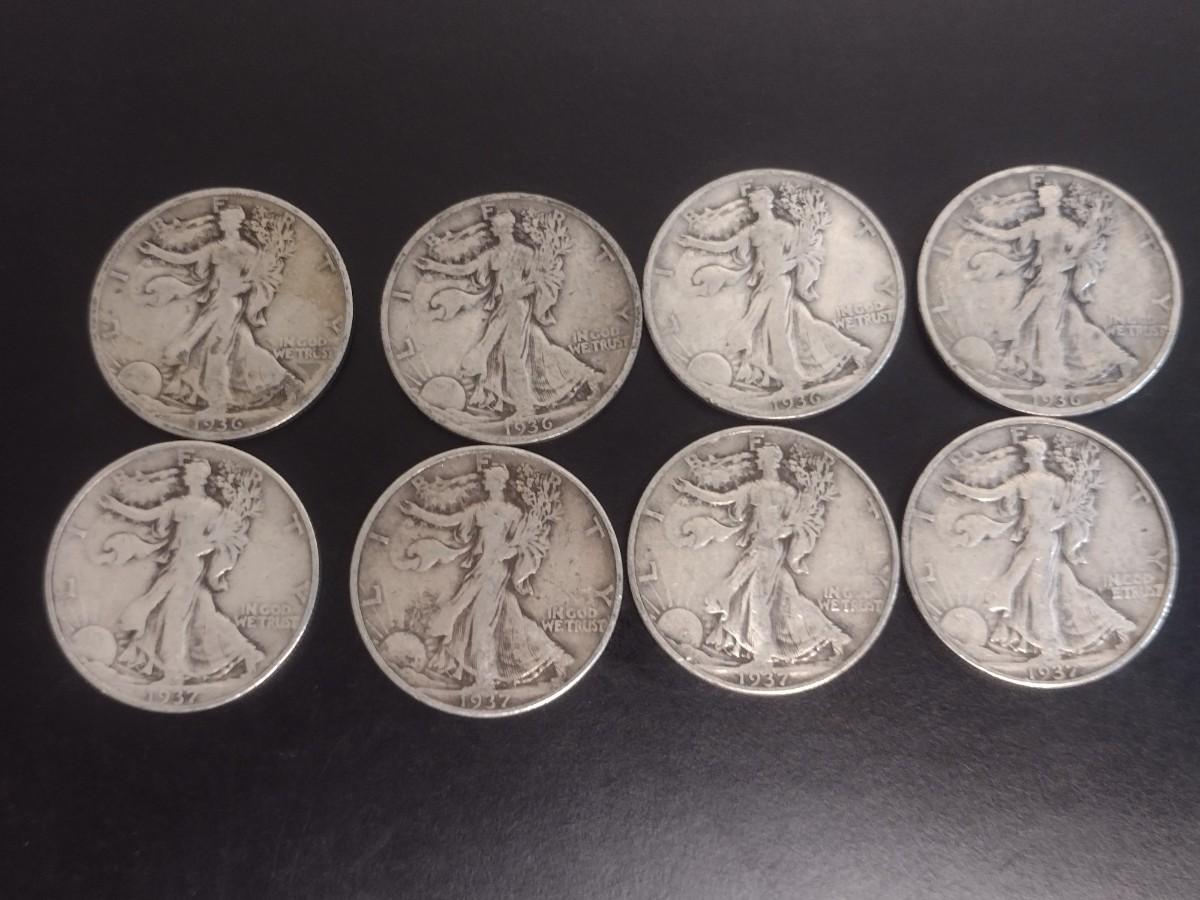 Set of 8 1930's U.S. Mint Walking Liberty Silver Half-Dollars Circulated (#113)