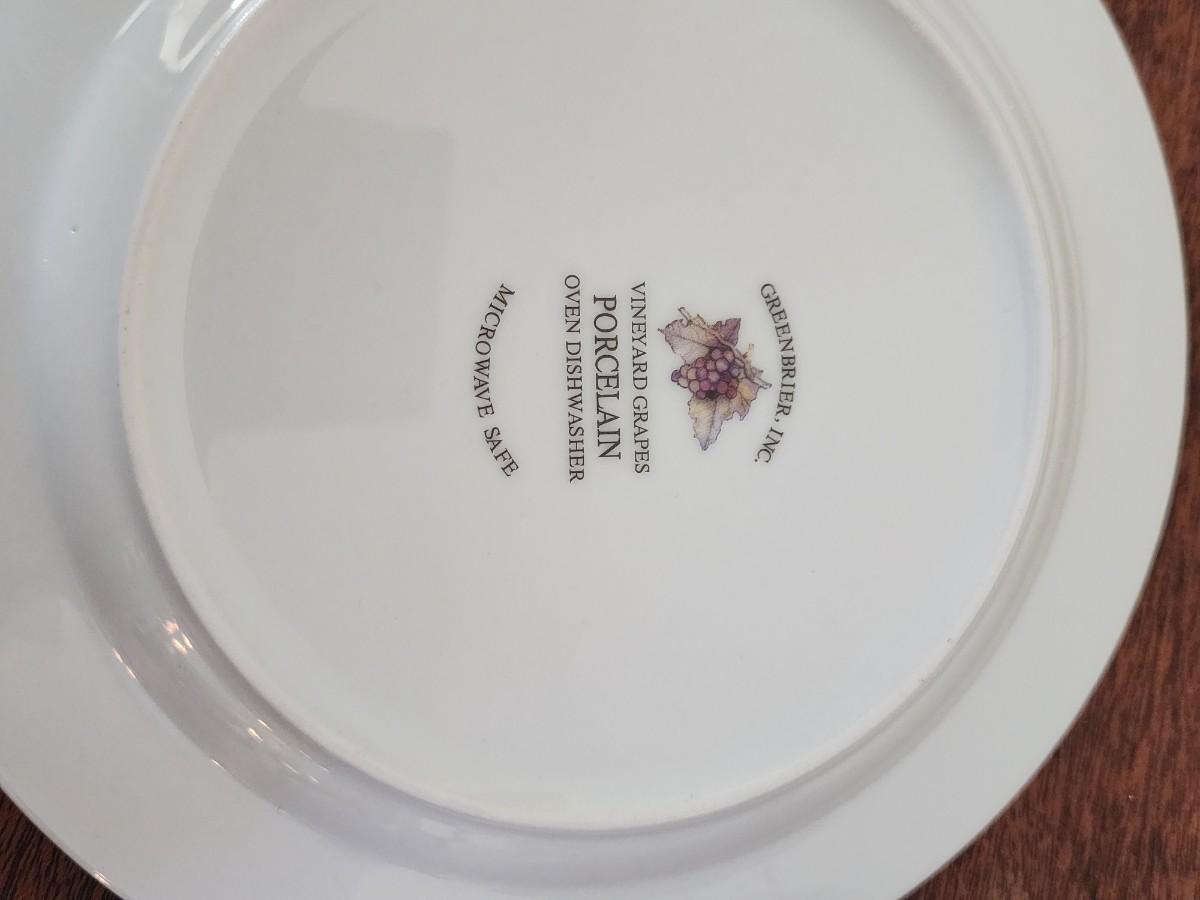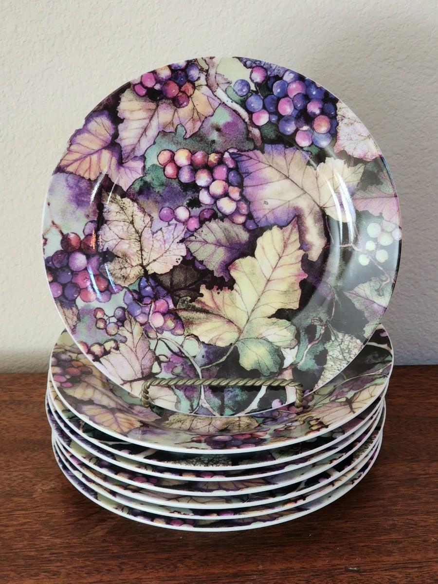 Set of 8 - 8" Greenbrier, Inc., Vineyard Grapes Porcelain Plates