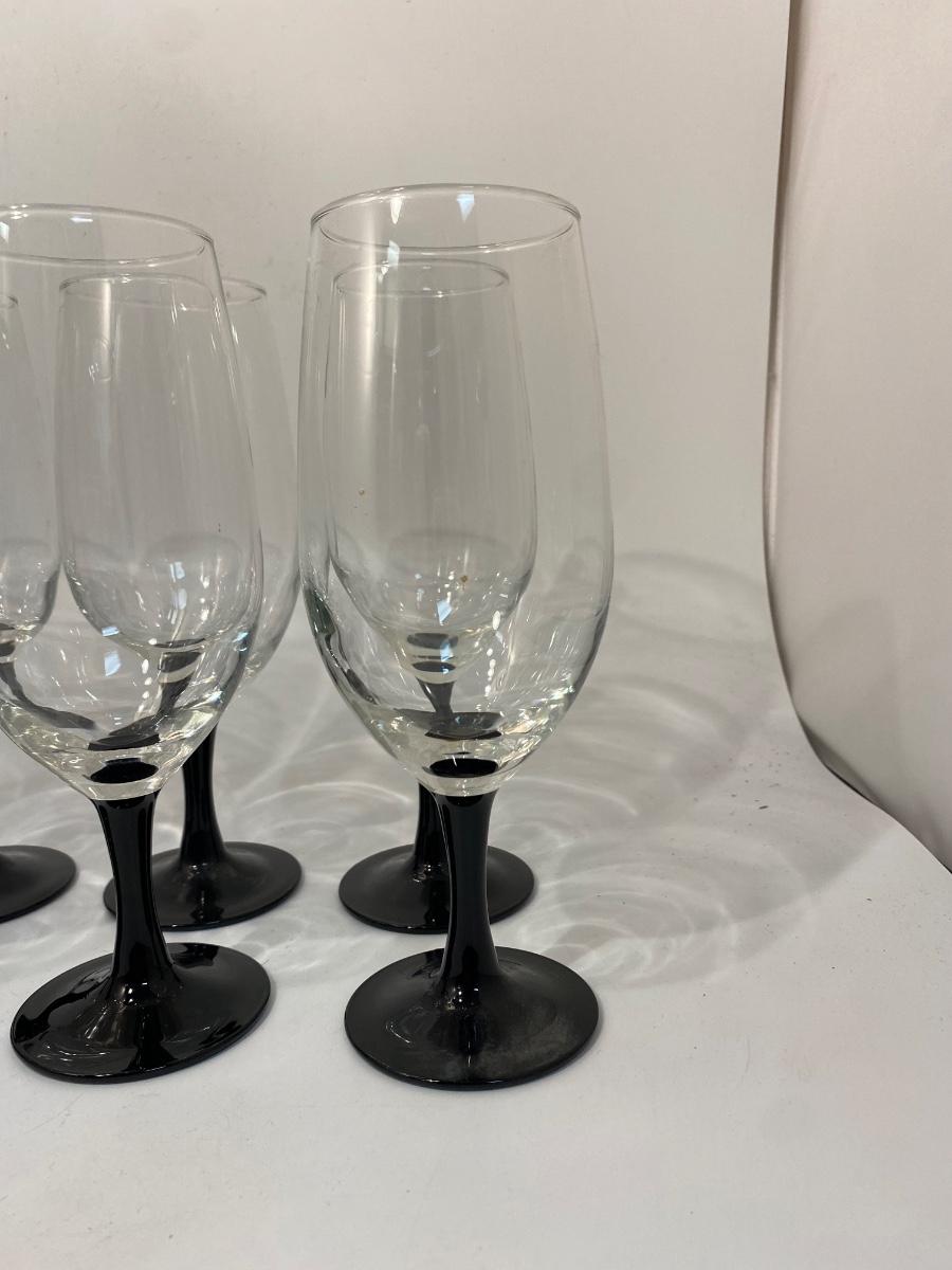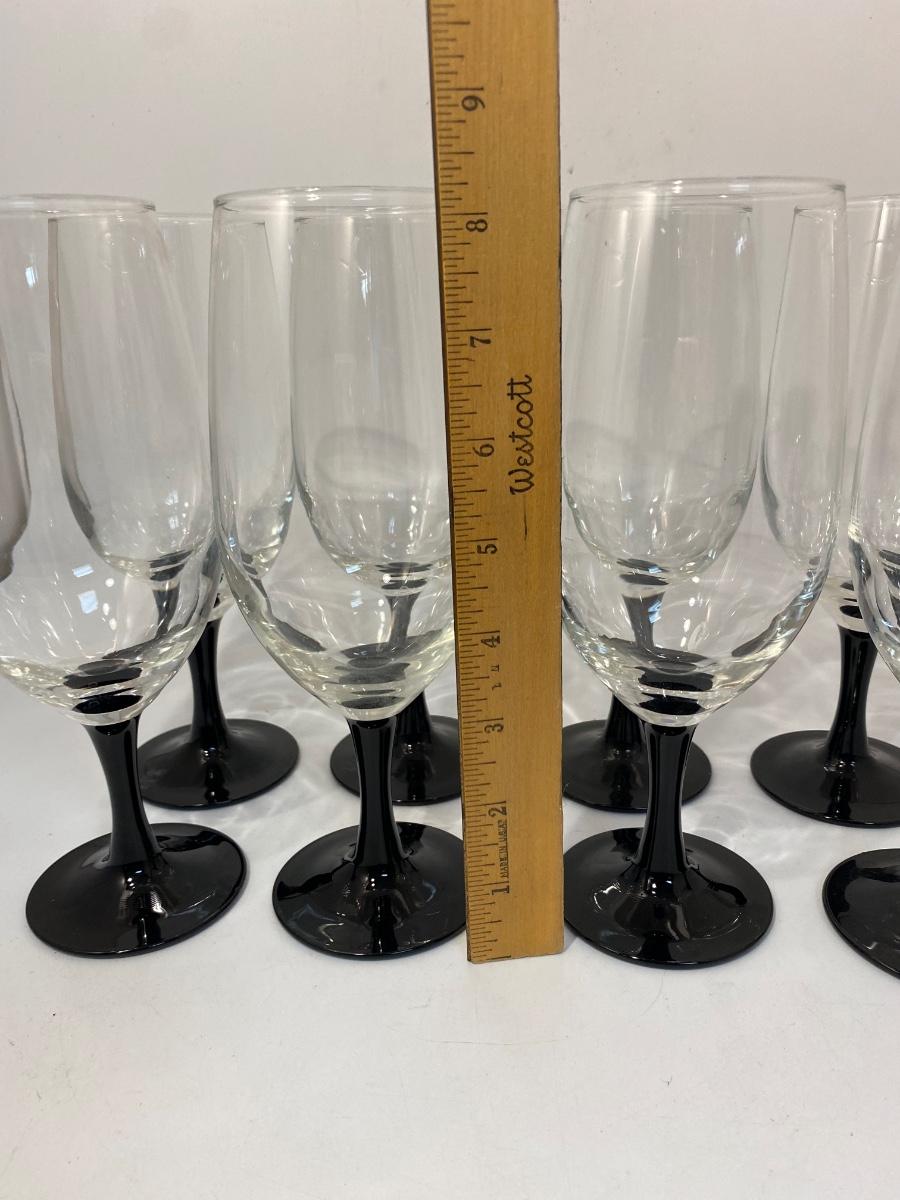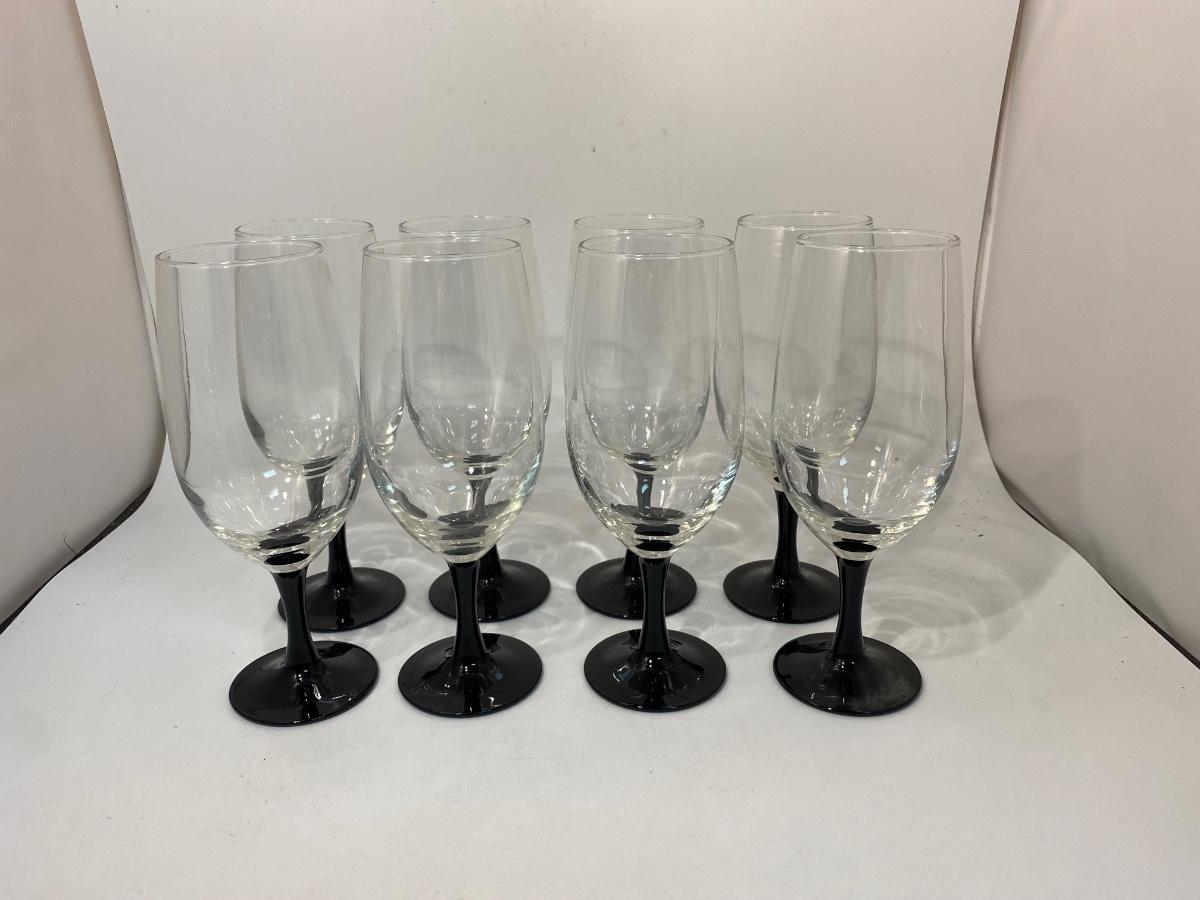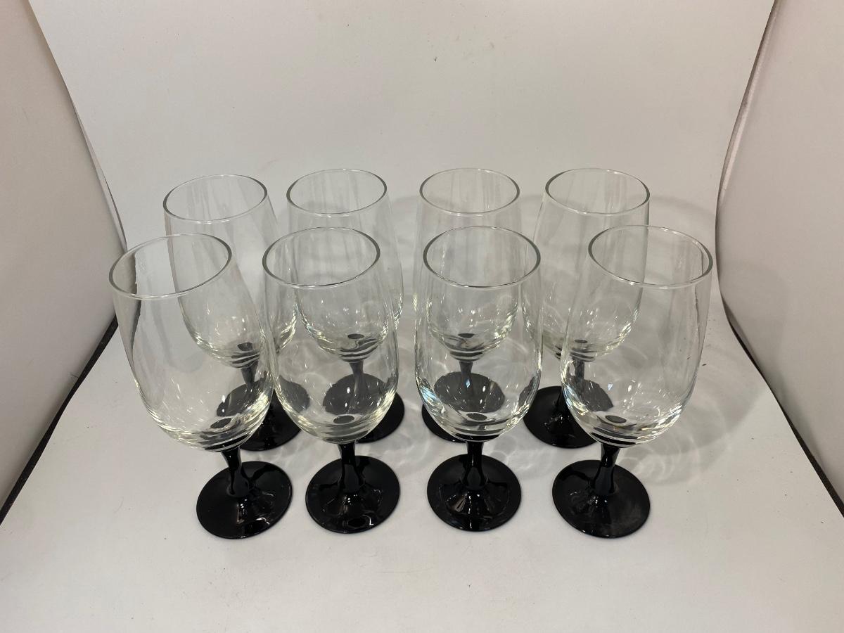 Set of 8 Black Stem Wine Water Goblet Drink Glasses Luminarc France. In good condition.
