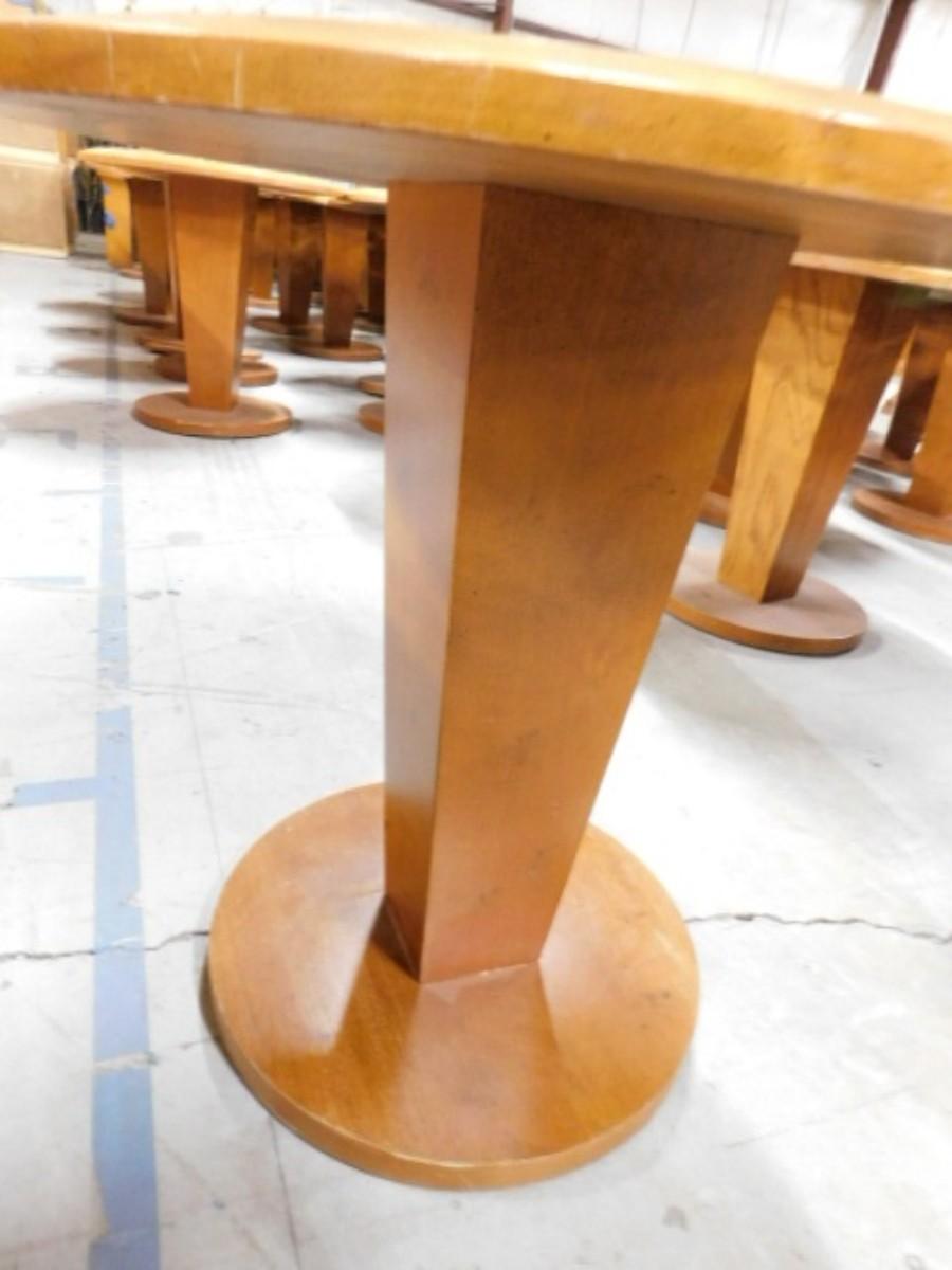 Set of 8 Contemporary Design Round Chair Height Pedestal Table Commercial Grade with Granite Insert . Bidder is buying eight units. Choice Expect some wear or scratches to the finish. Shipping option available via freight or local mover at Buyer's expense. Buyer must have all shipping scheduled within the stated dates and times of pickup. Recommended local mover is Beaty Bros. Moving 828-201-2982