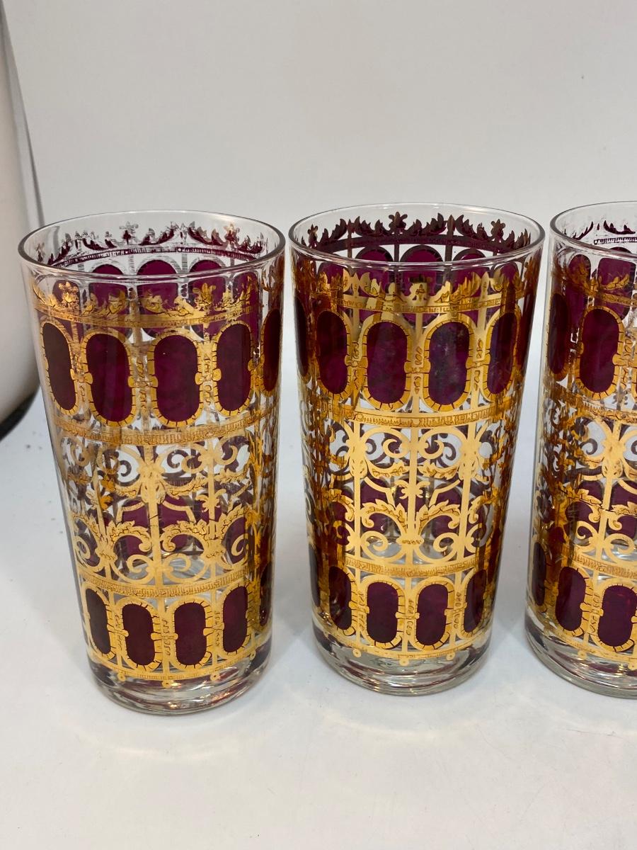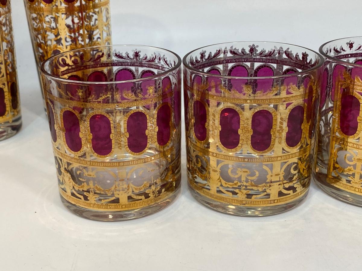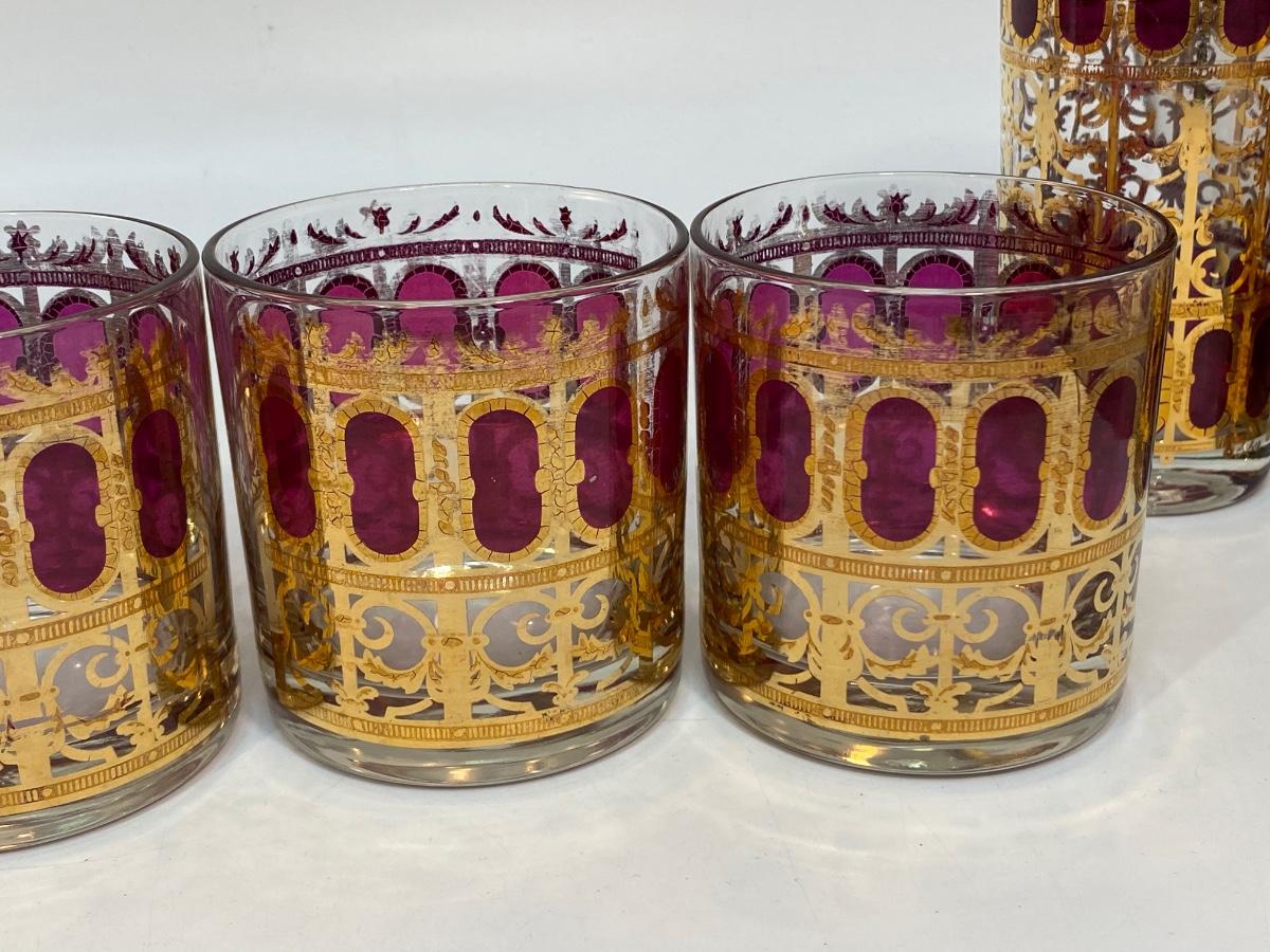 Set of 8 Culver Mid Century MCM Cranberry Scroll Red & Gold Barware Drink Glasses #2