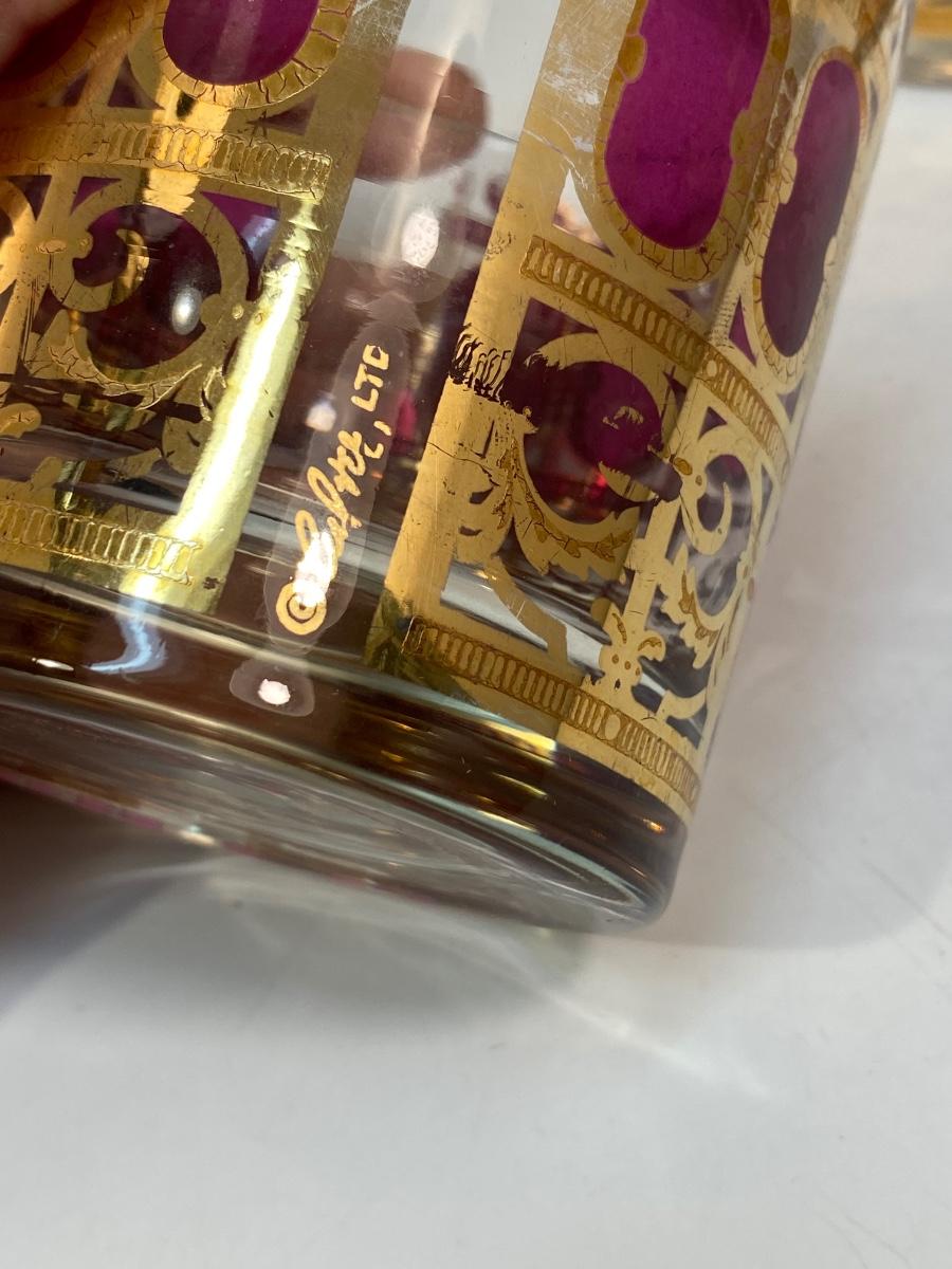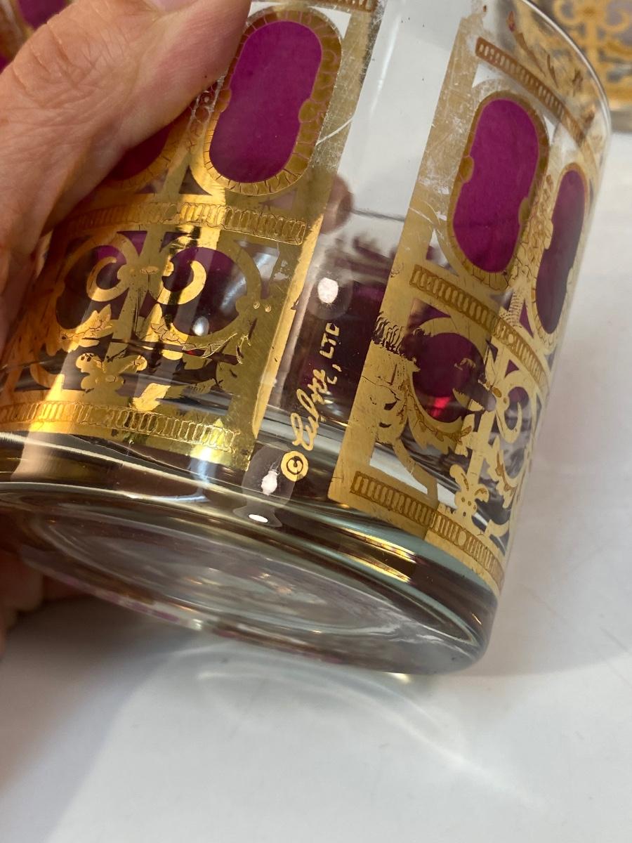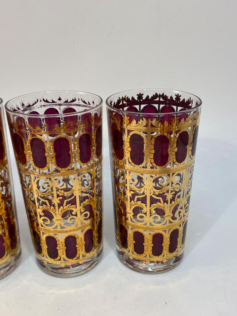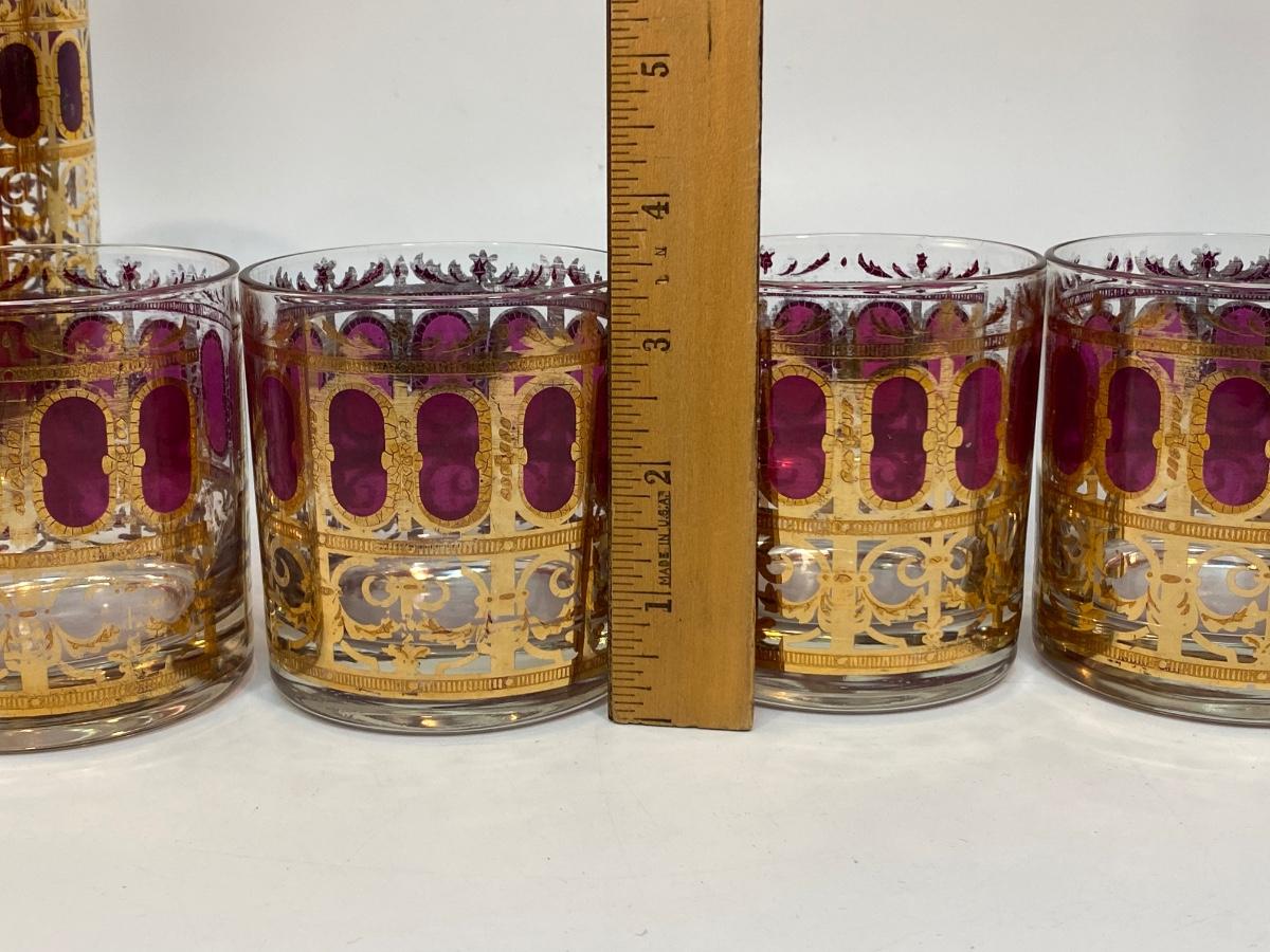 Set of 8 Culver Mid Century MCM Cranberry Scroll Red & Gold Barware Drink Glasses #2
