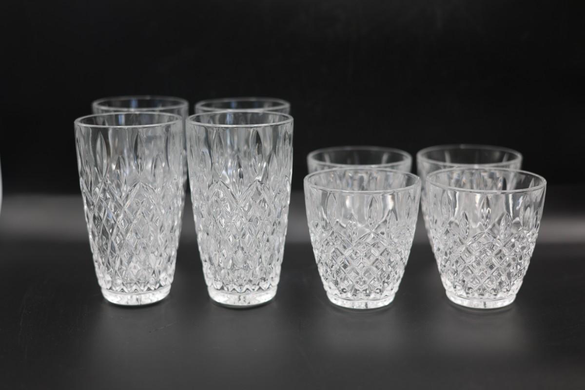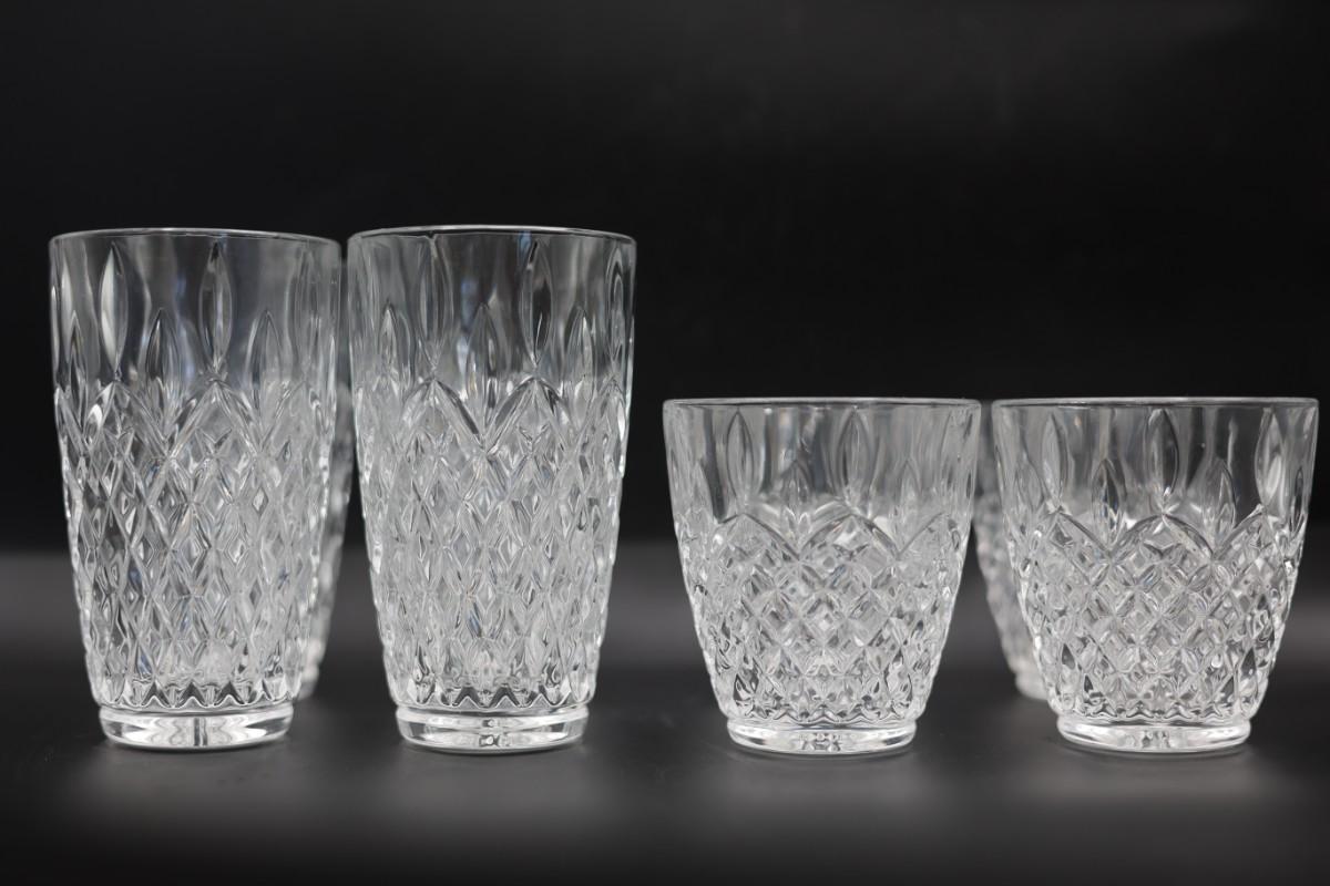 Set of 8 Cut-Style Glass Barware – 4 Highball + 4 Lowball