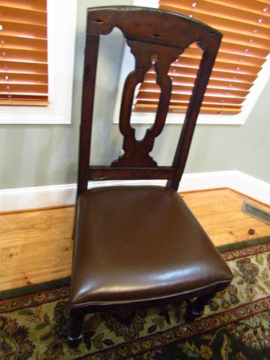 Set of 12 Dining Chairs by Hekman- Wooden with Leather Seats. Please see all pictures- a couple of seats have wear/damage.