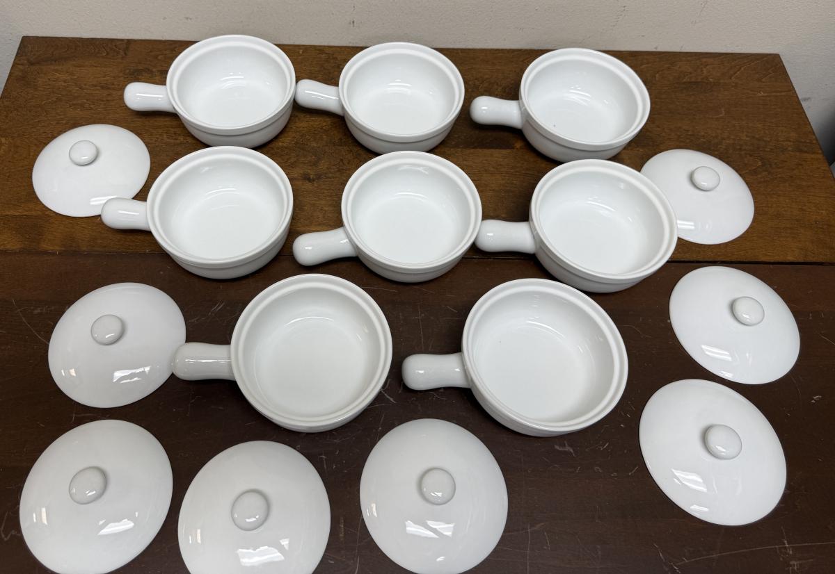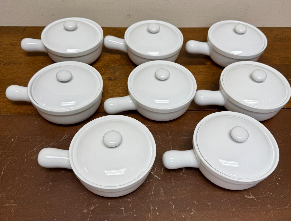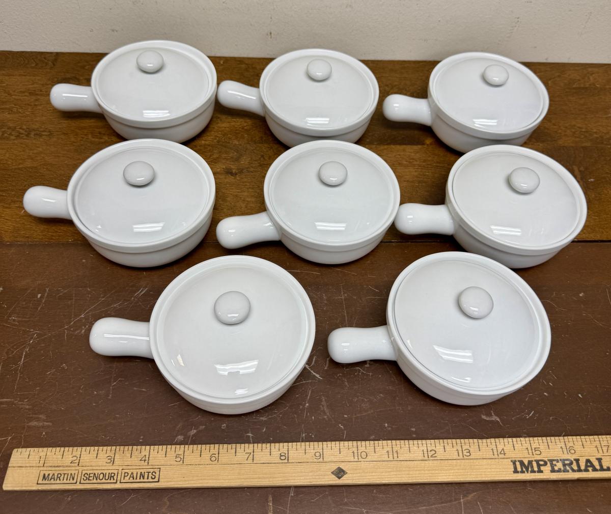 Set of 8 Everyday White Soup Crocks with lid and Handle