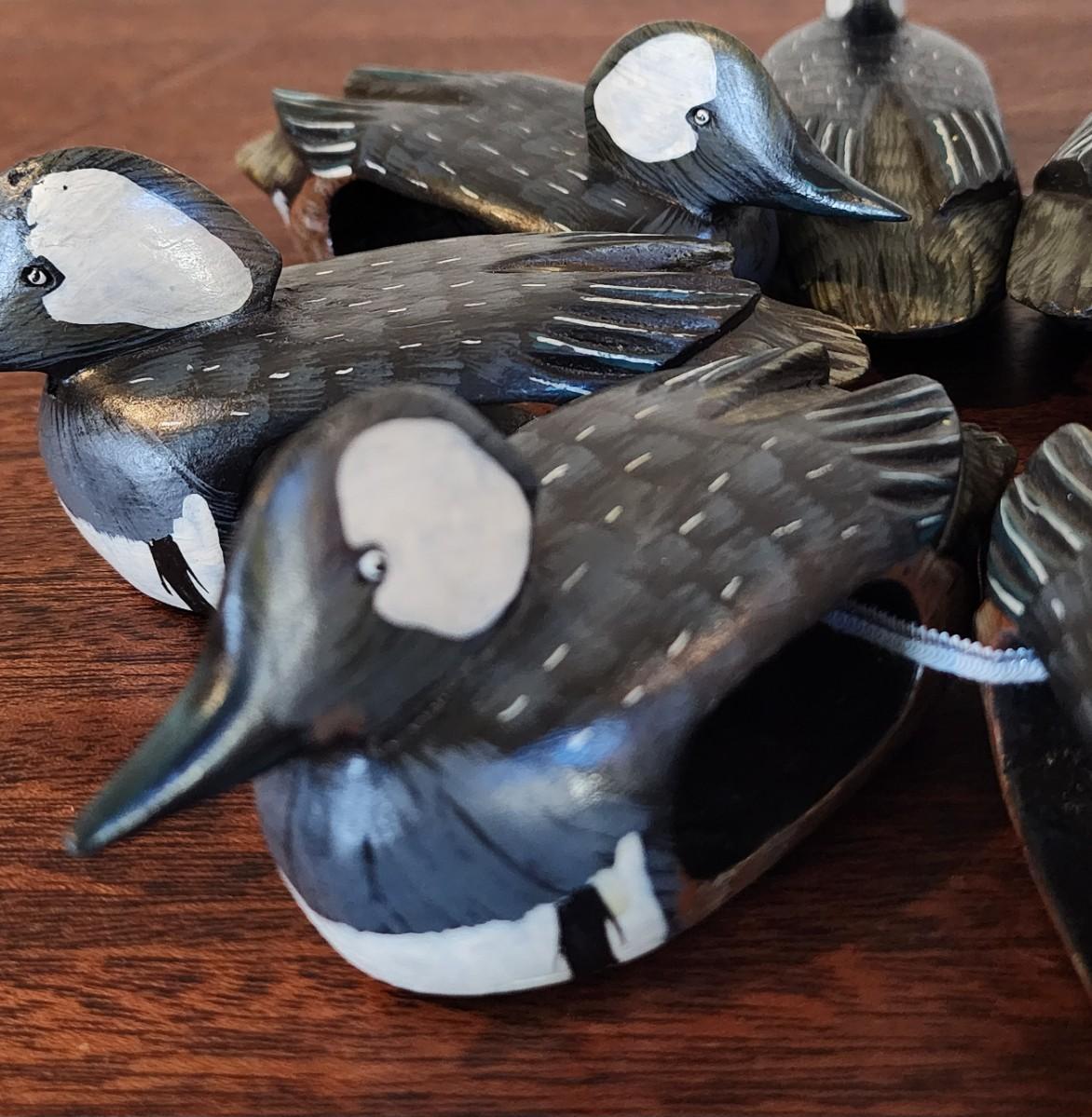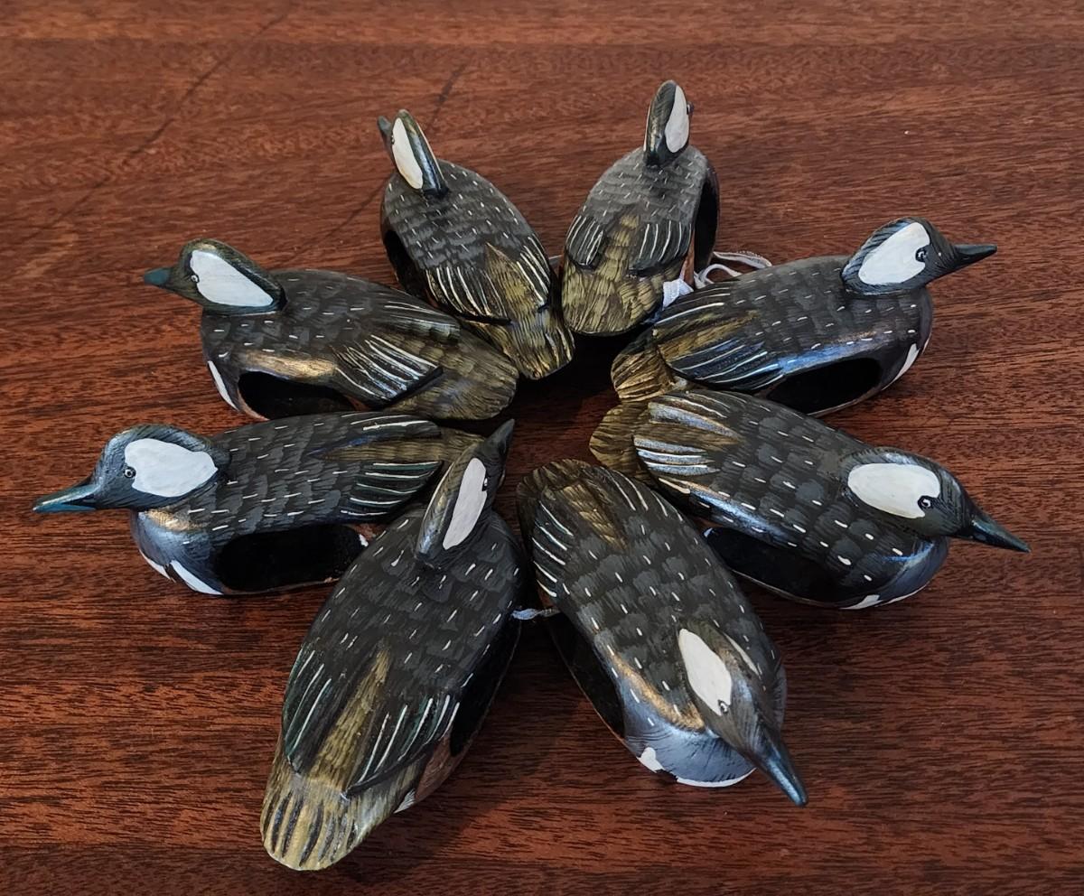 Set of 8 Hand Carved and Painted Duck (Hooded Merganser) Napkin Rings