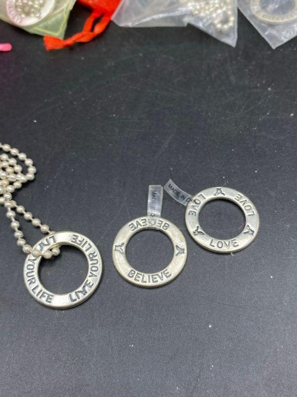 Lot of 8 inspirational quote charm sets from American Eagle Outfitters. Not sure where these were acquired. Three charms per set. Circles say believe, love, live your life, and hope on one side and American Eagle Outfitters on the other. Great for gifts or repurpose crafts.