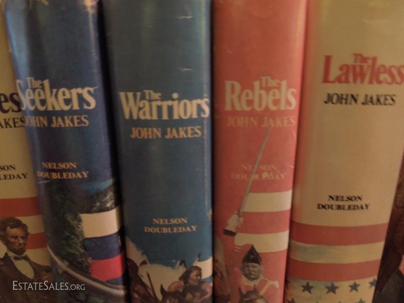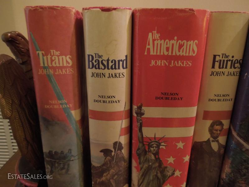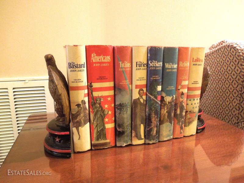 Set of 8 John Jakes Novels and Metal Eagle Bookends
