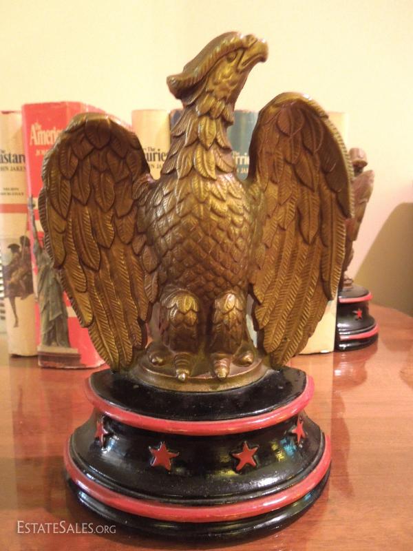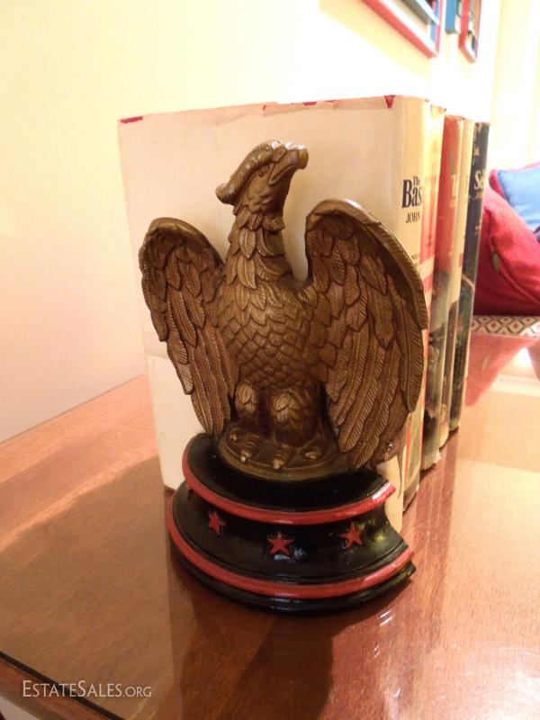 Wow! Hardback Book Club Edition of Jakes novels. Handsome eagle bookends are painted light metal, not cast iron. Made by Sexton in U.S.A.