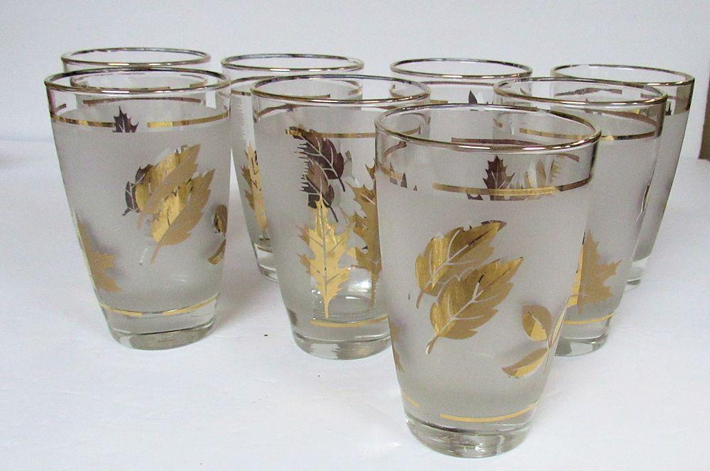 Set of 8 Libbey Golden Foliage Flat Tumblers in Original Box