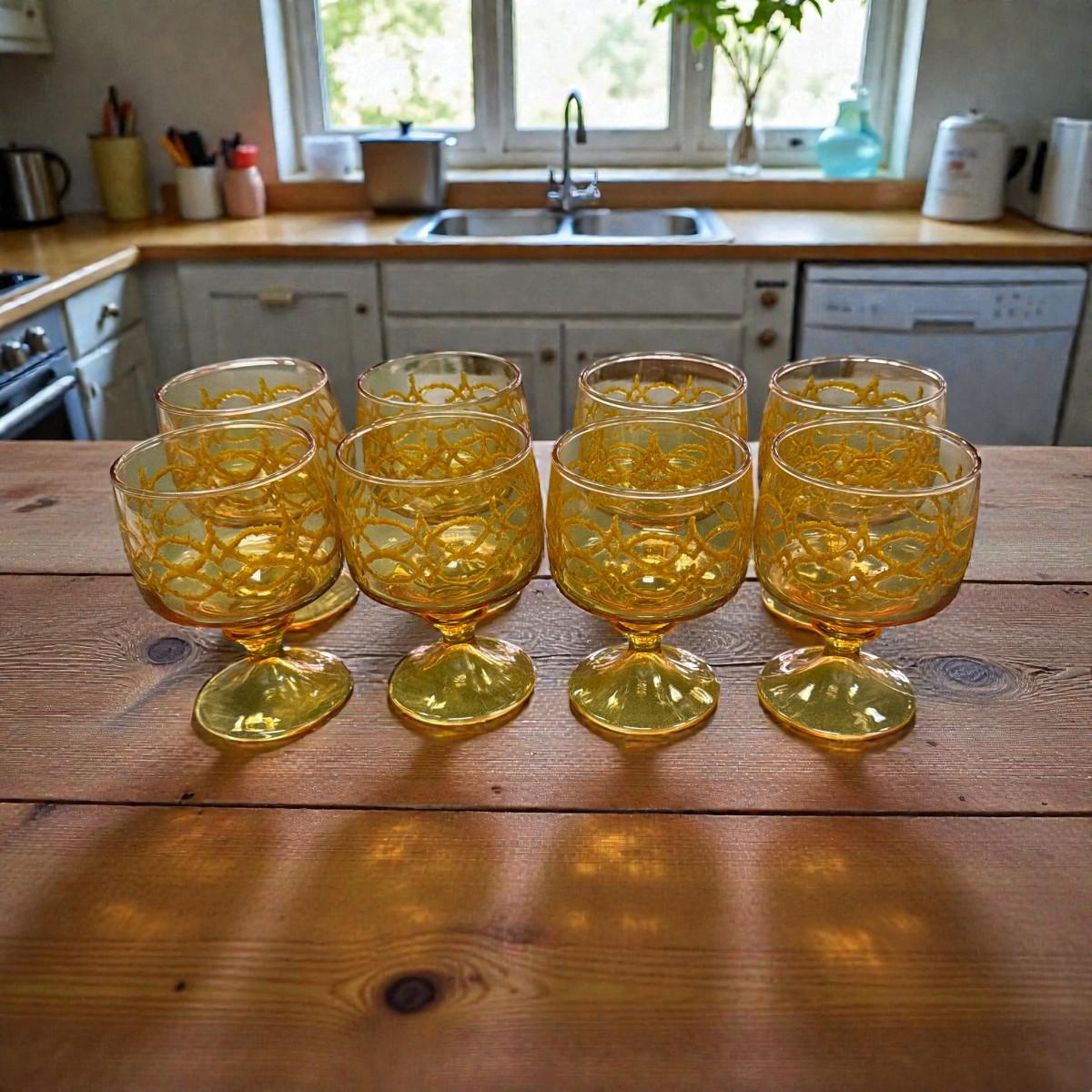 Set of 8 Libbey Prado Scroll Design Tawny Brown 9 oz glasses
