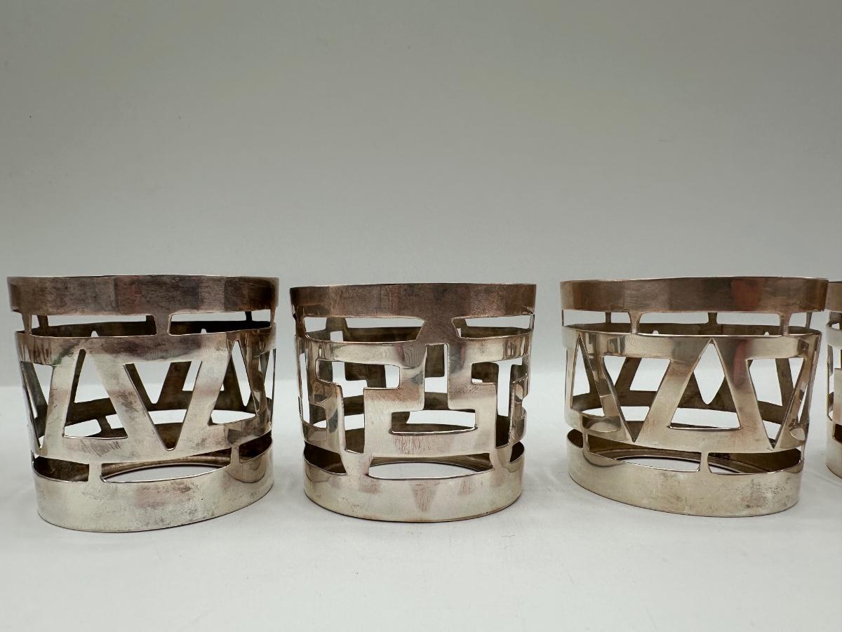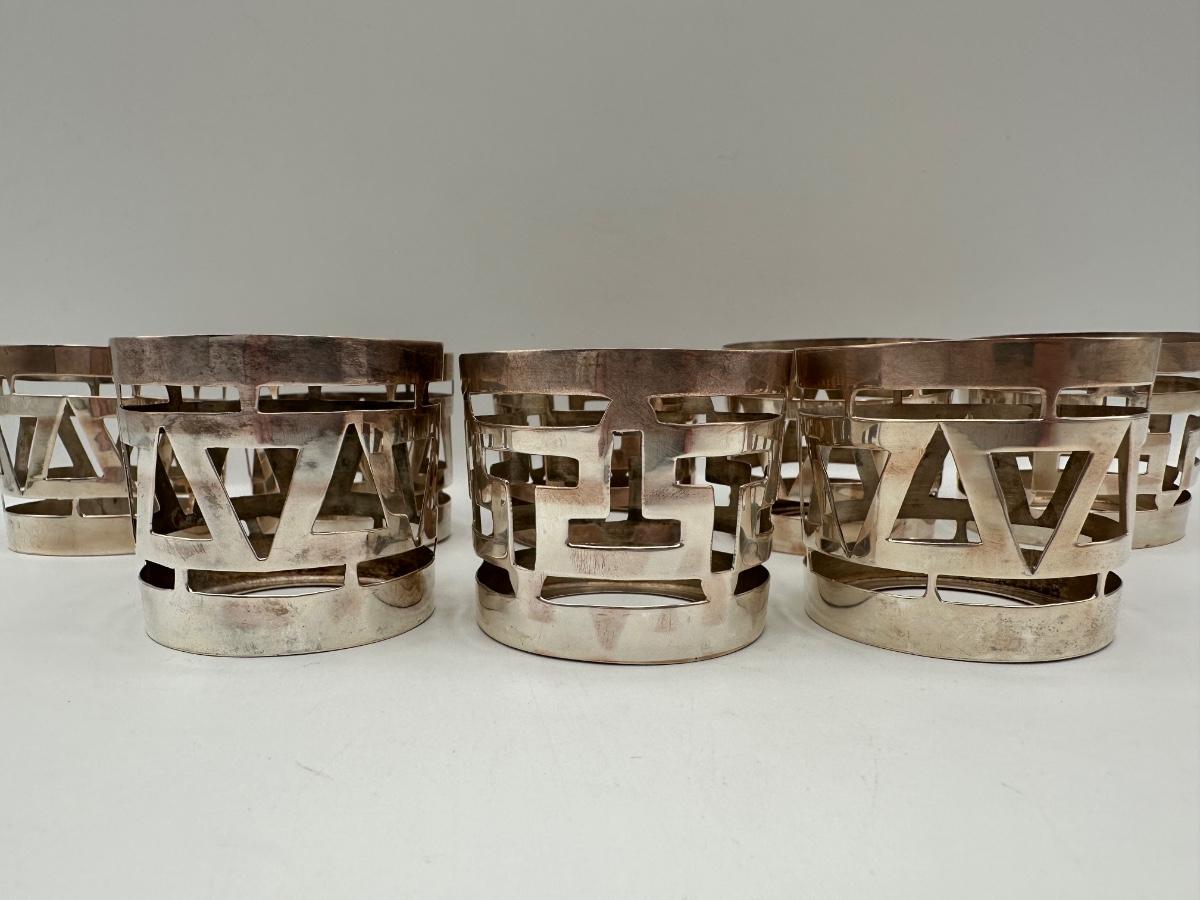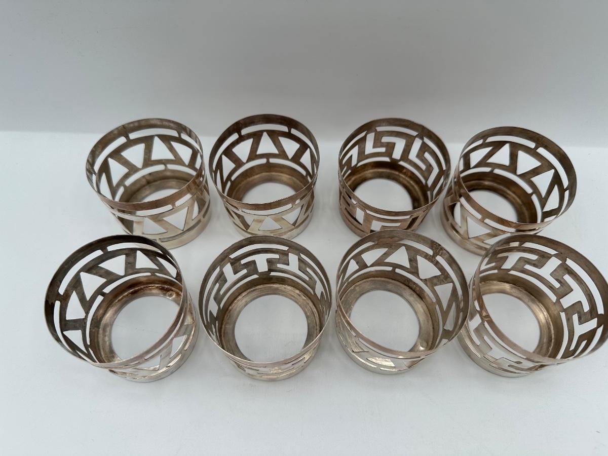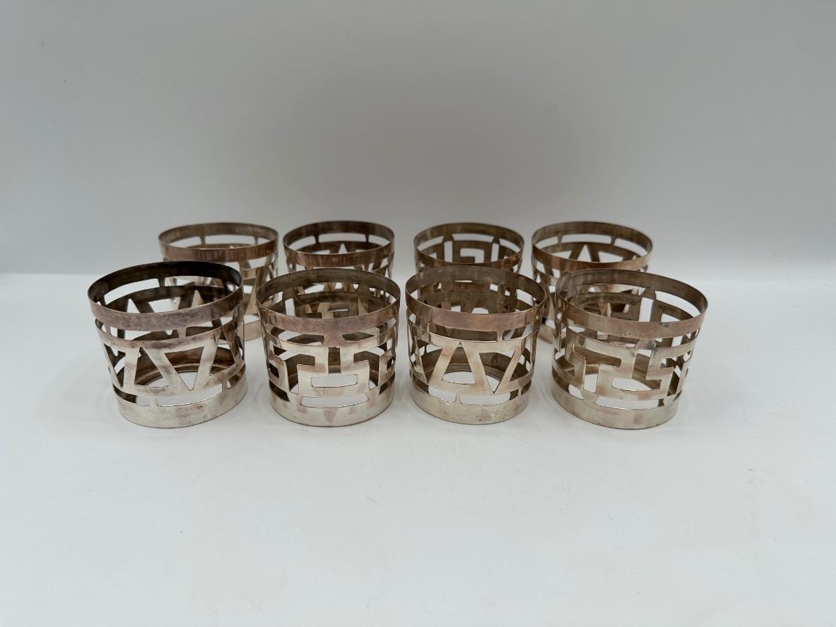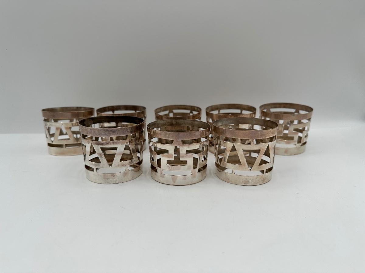 Set of 8 Mexican Sterling Silver Geometric Napkin Rings