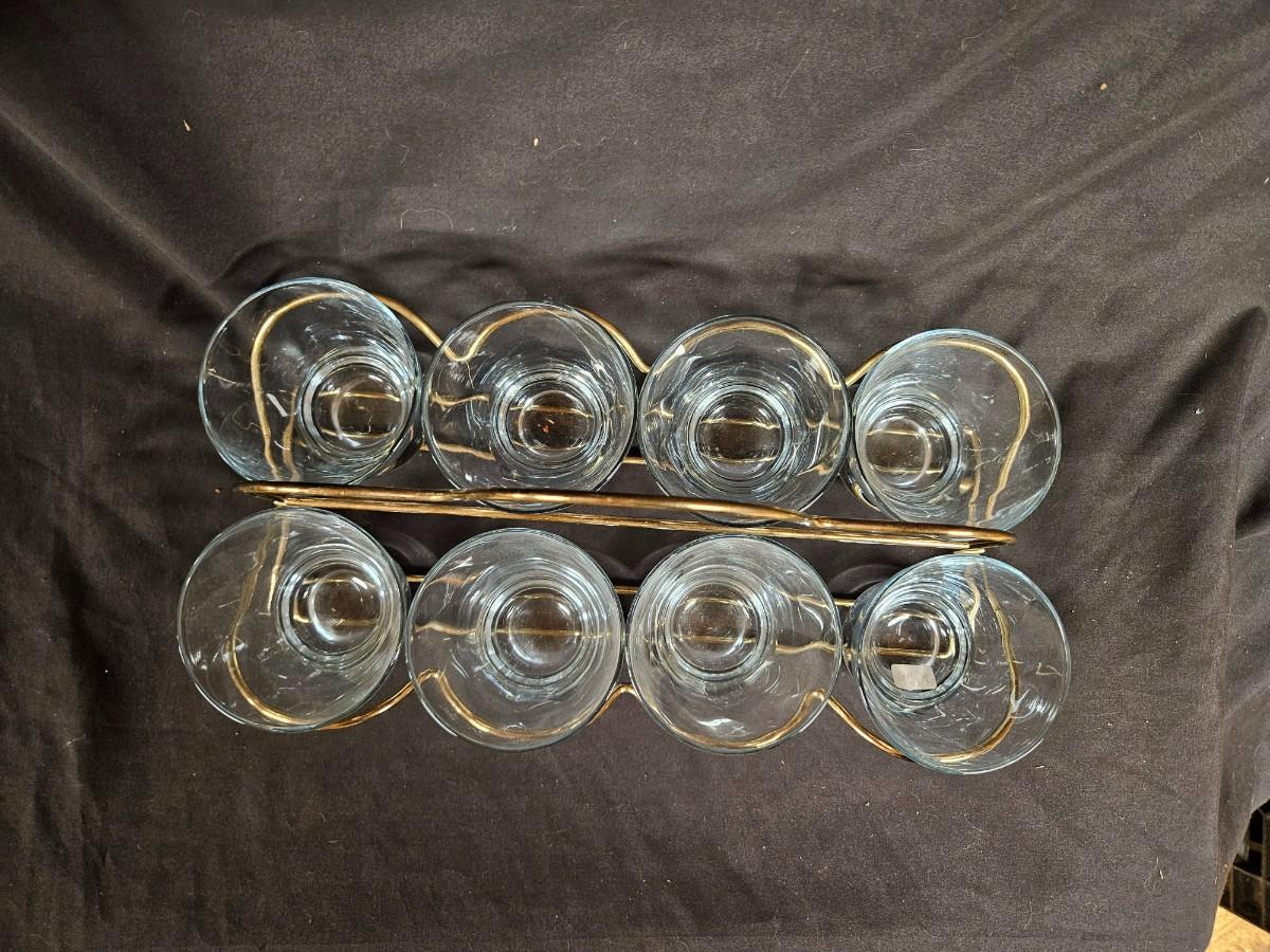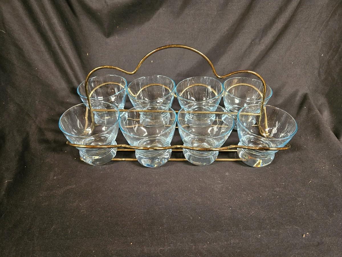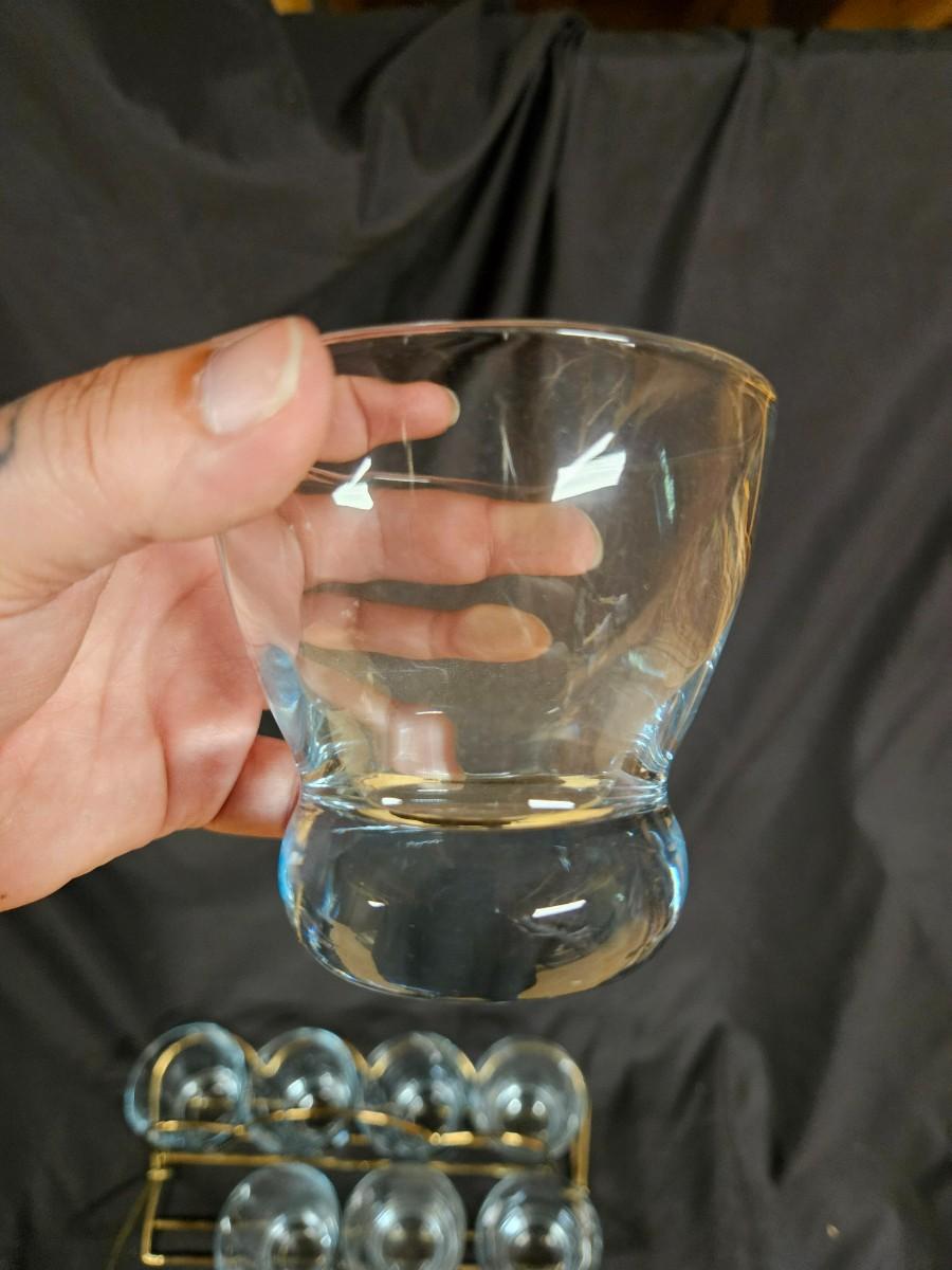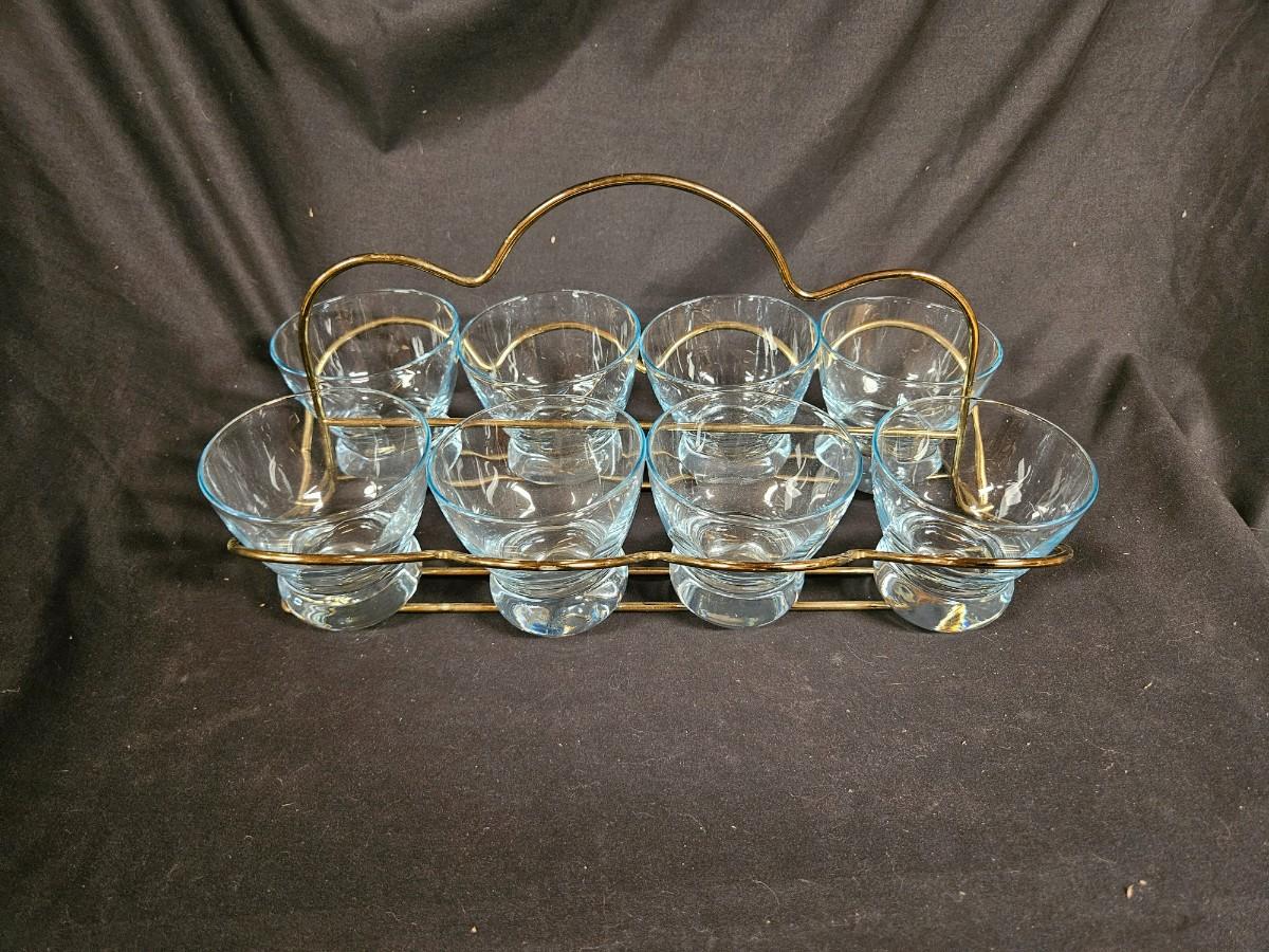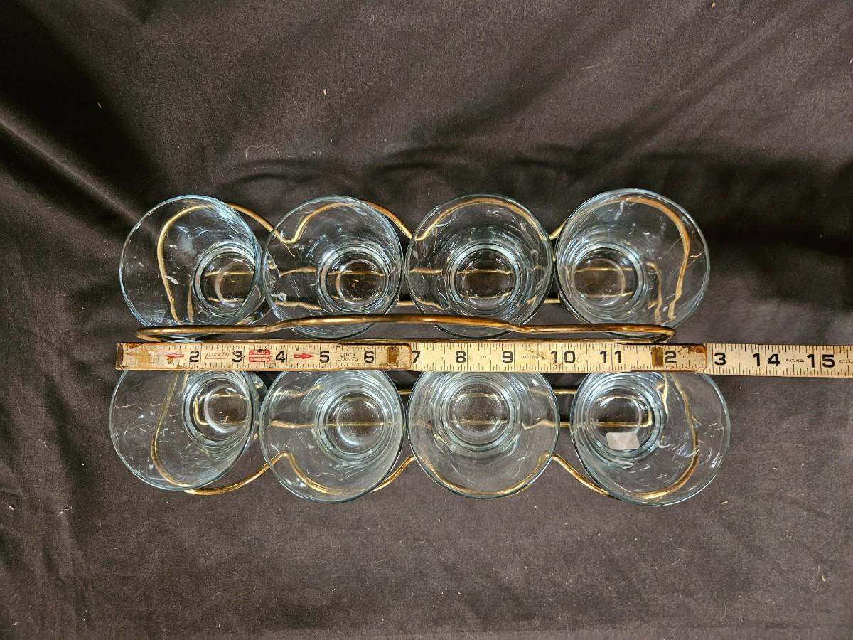 Set of 8 Mid Century Lowball Cocktail Glasses in Metal Caddy