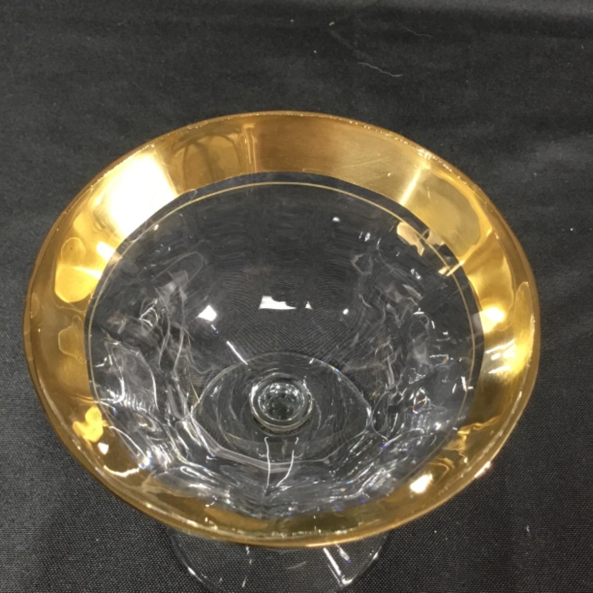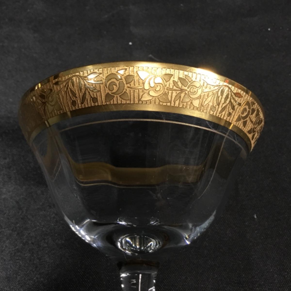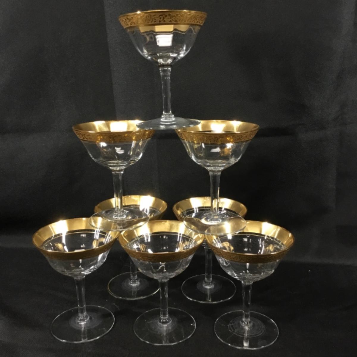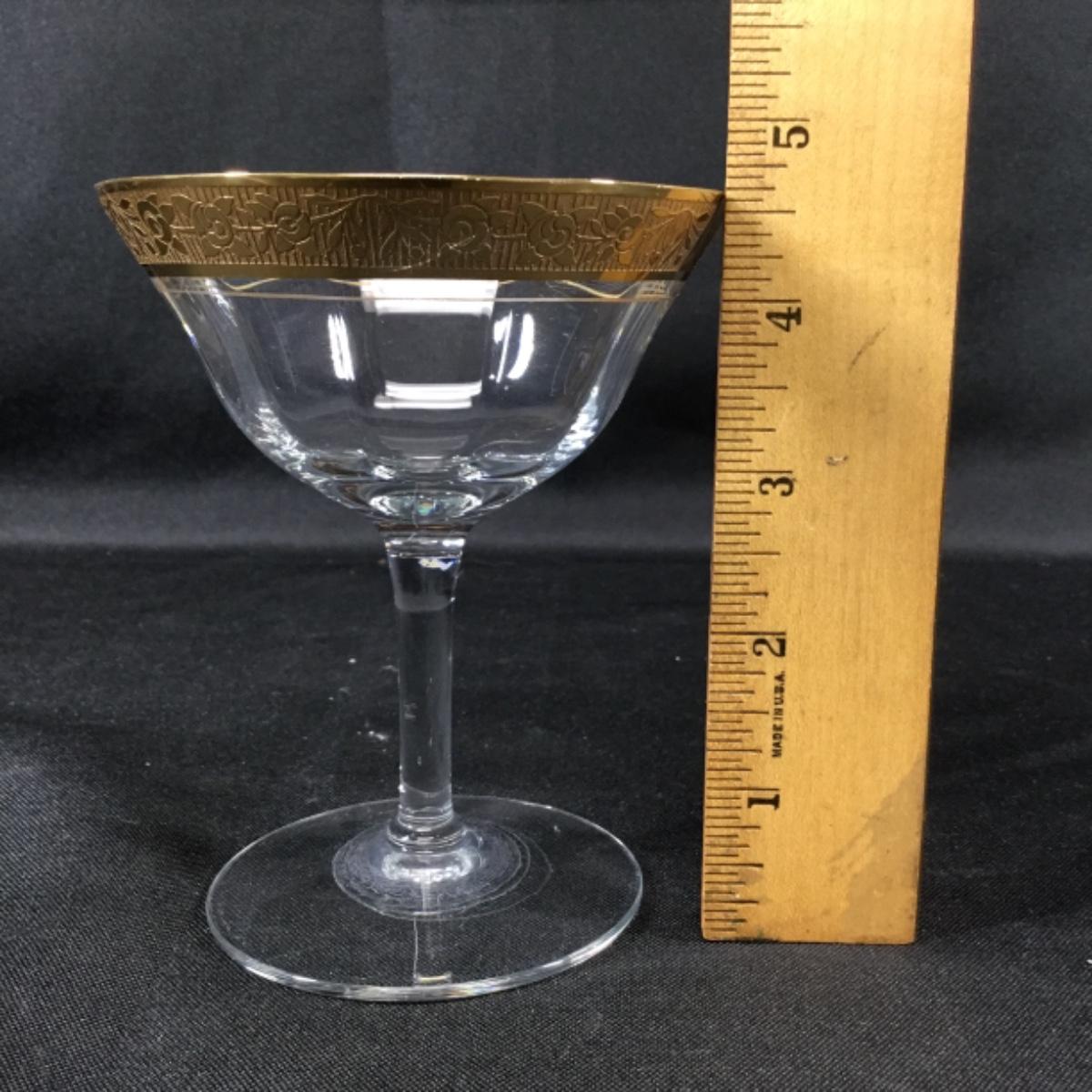 Up for auction or eight ornate gold rimmed champagne glasses. They are all in excellent condition; see pictures.